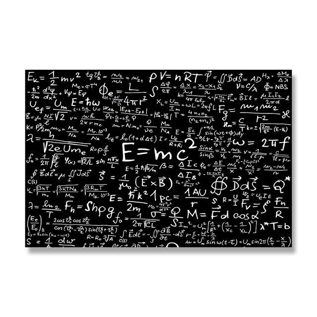 Frameless Physics Formula on Blackboard Relativity Poster Math Science Wall Art Canvas Painting for School Room Wall Decoration Pictures