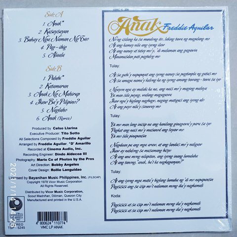 Freddie Aquilar ANAK Vinyl Record Plaka
