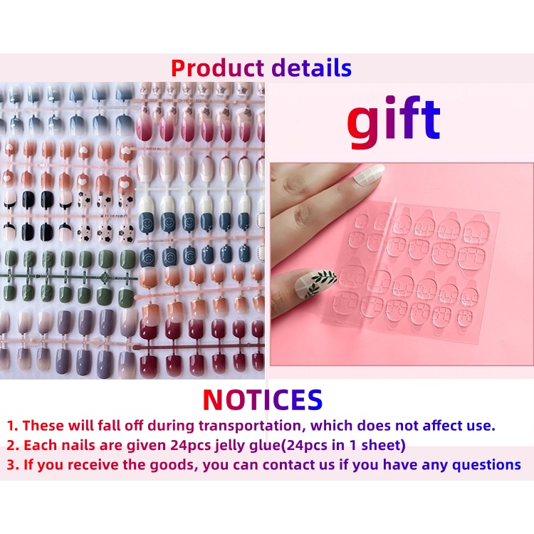 Free 24Pcs Jelly Glue 24pcs Fake Nails Set With Glue Long Nails French Nail Care Nail Manicure Nails