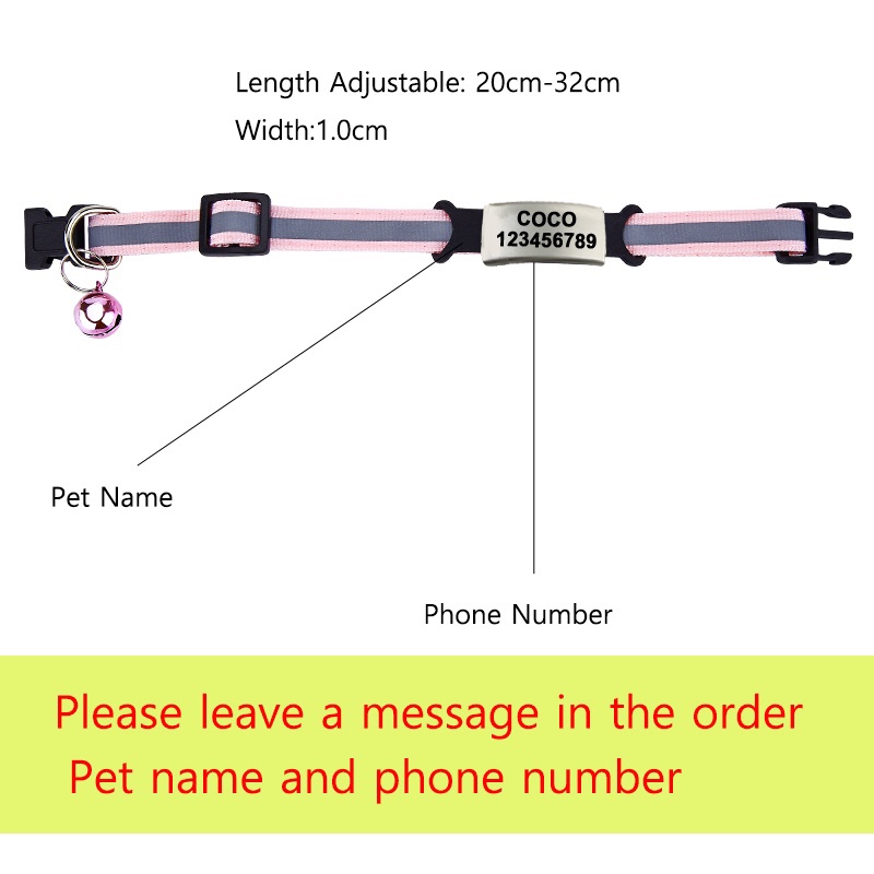 Free Custom ID Name Tag Cat Collar Bell Necklace Safety Reflective Nylon Kitten Cat Collar Personalized Engraved Safte Buckle