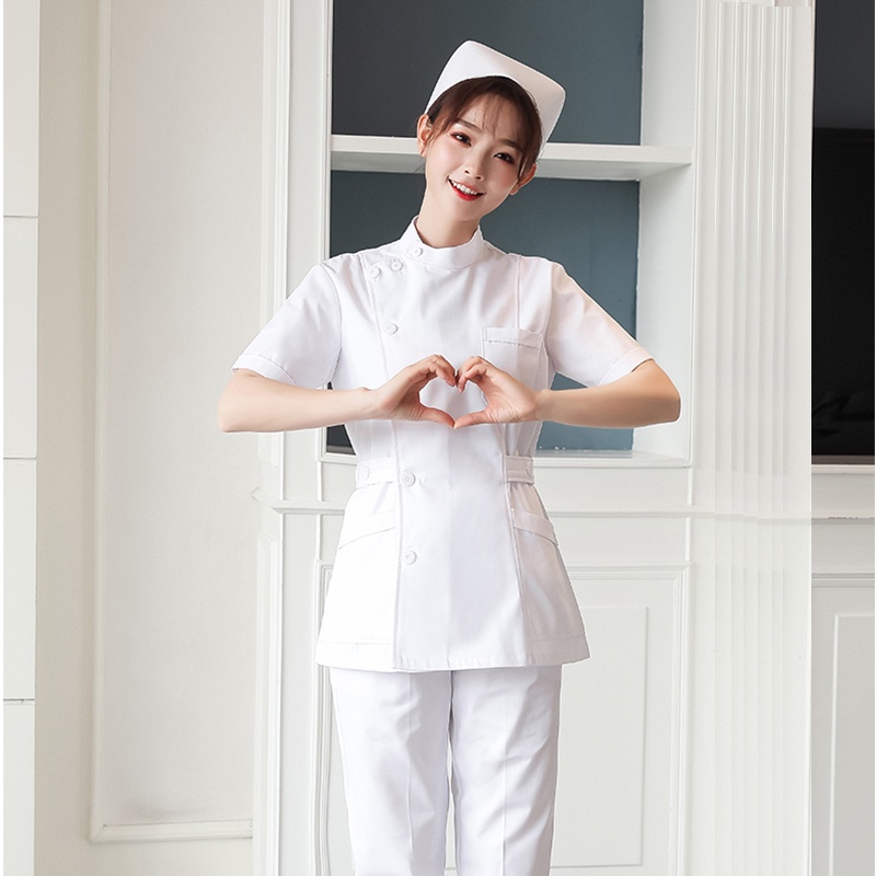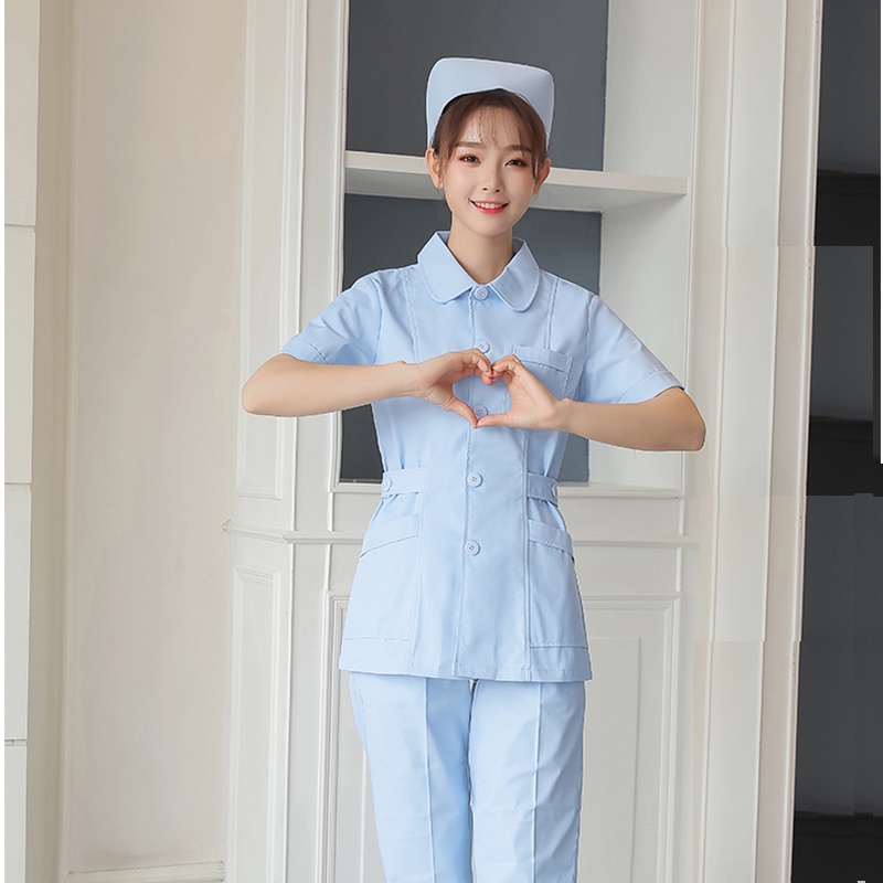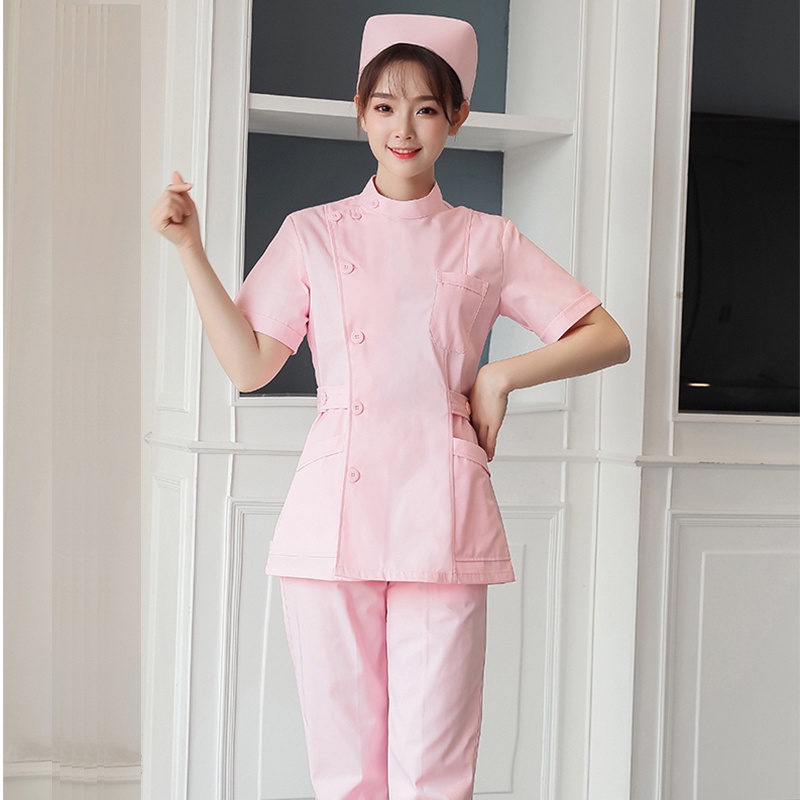 Free Name Nurse Suit Caregiver Uniform Women's Medical Suit Short Sleeve Hospital Uniform Surgical Gown Dental Clinic