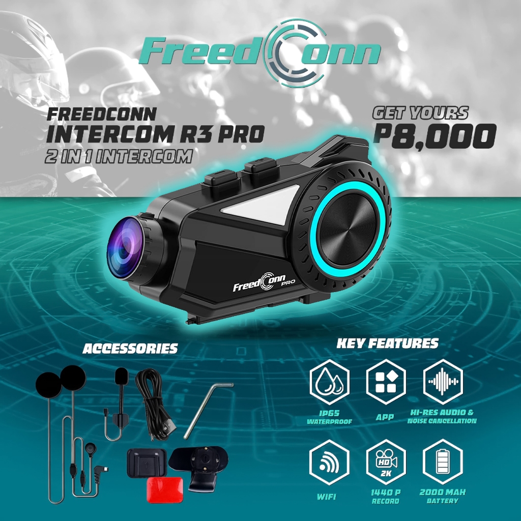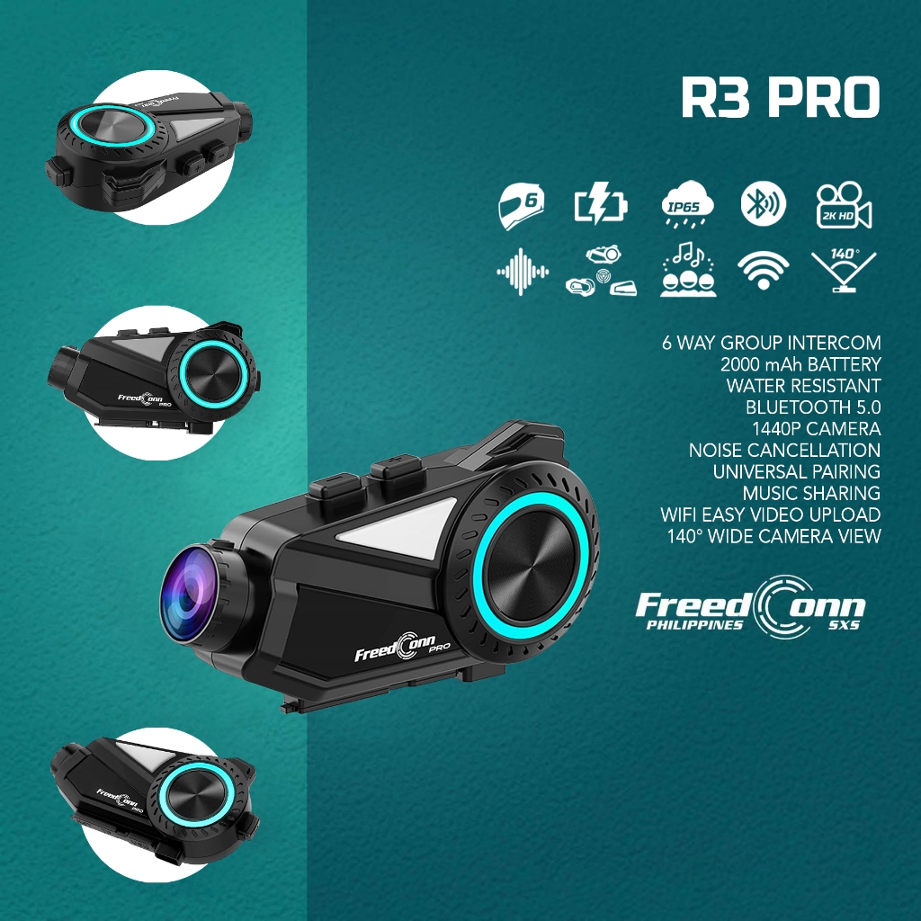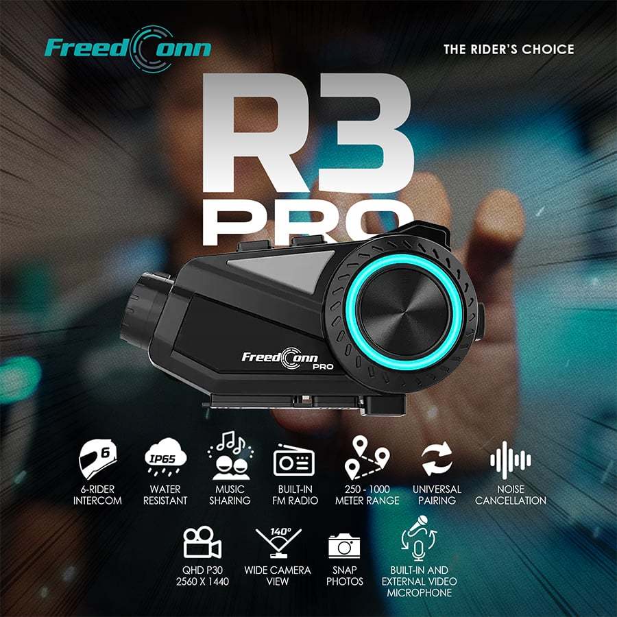 FreedConn PH R3 PRO Bluetooth 5.1 Motorcycle Group Intercom HD 2K Video FM 6 Riders