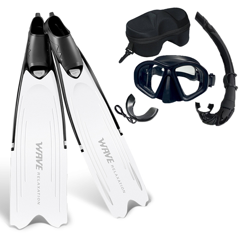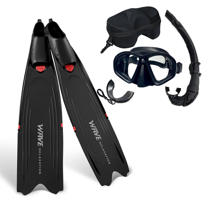 Freediving Fins set Spearfishing Long Blade Free diving Fins set Diving Mask Snorkel and Fins set
