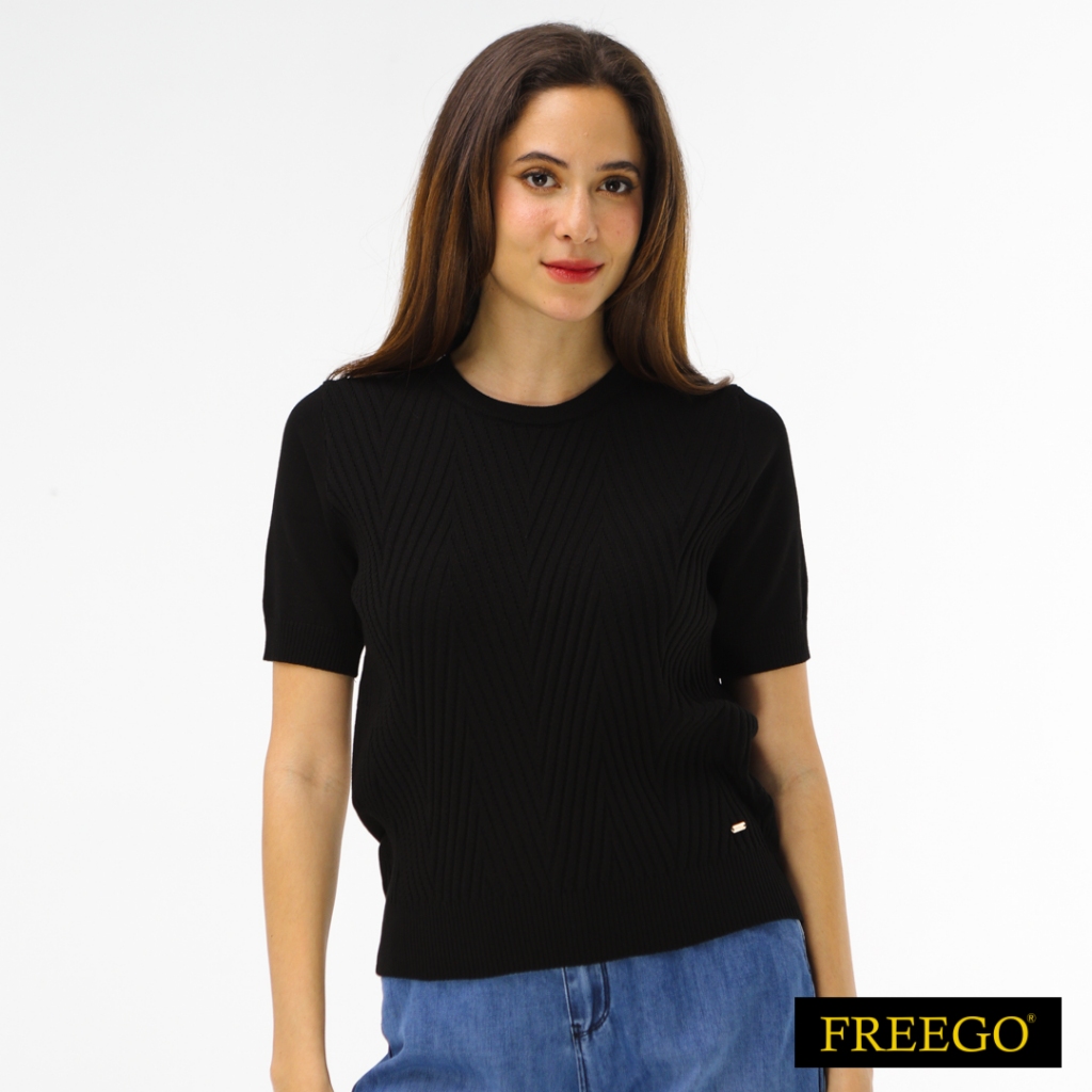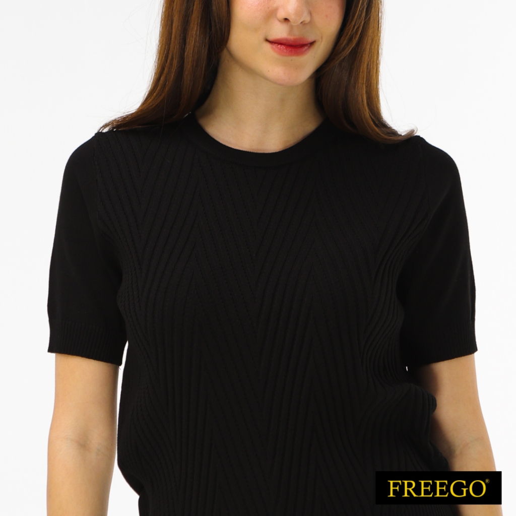 Freego Ladies Special Knitted Plain Short Sleeve Blouse AST12-0100