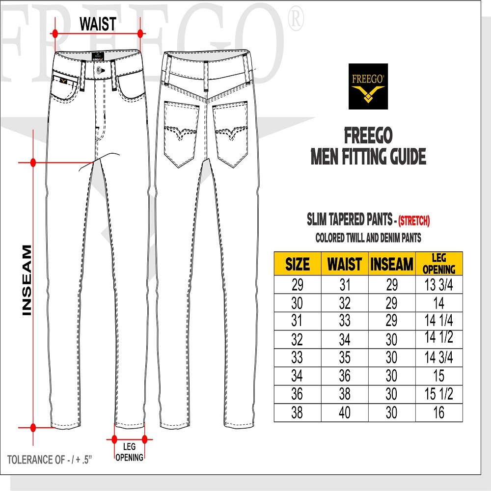 Freego Mens Colored Long Pants Slim Tapered Stretch GSB42-0046