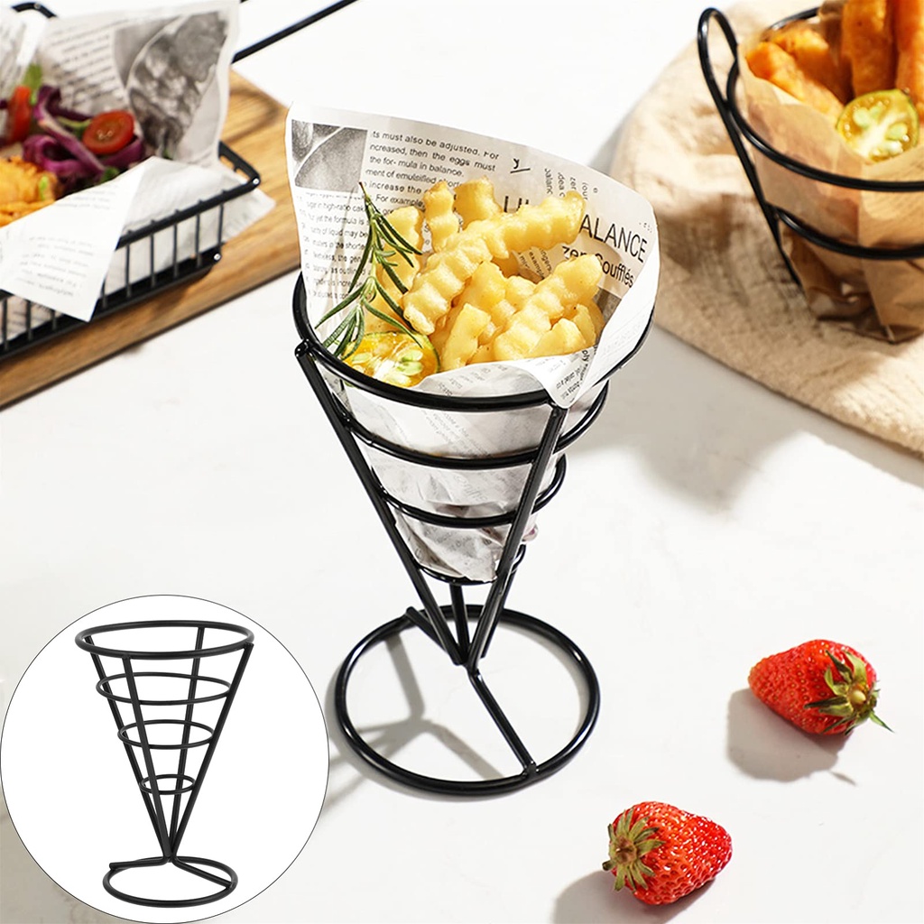 French Fry Holder Metal Wire French Fry Tray Cone Basket for Kitchen Restaurant Party Supplies