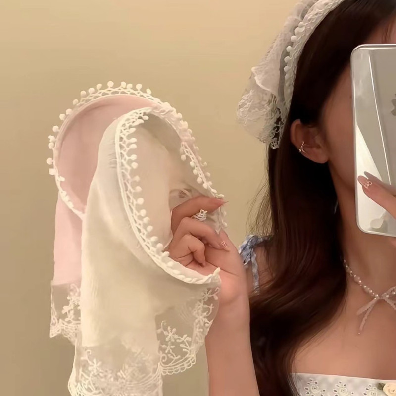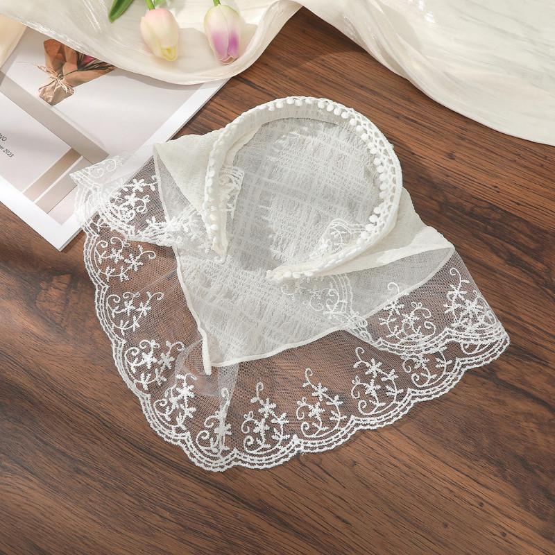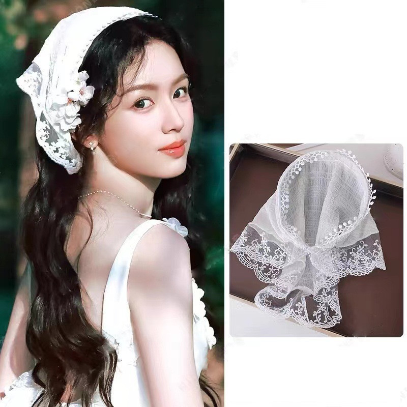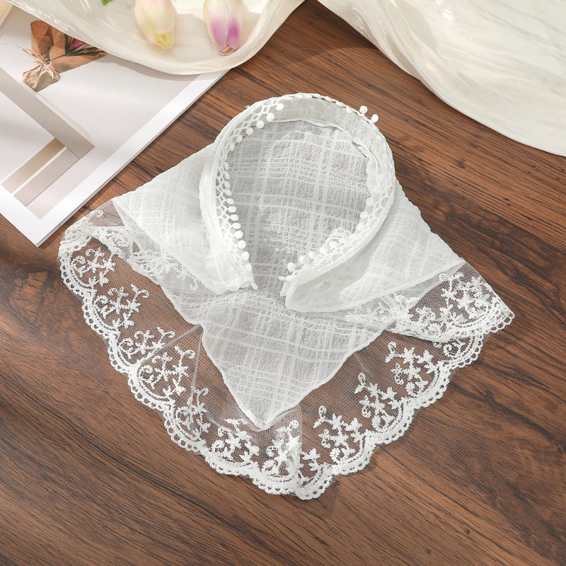 French Lace Triangle Scarf Headband Pastoral Plaid Print Headband Hairwear Women Triangular Bandana