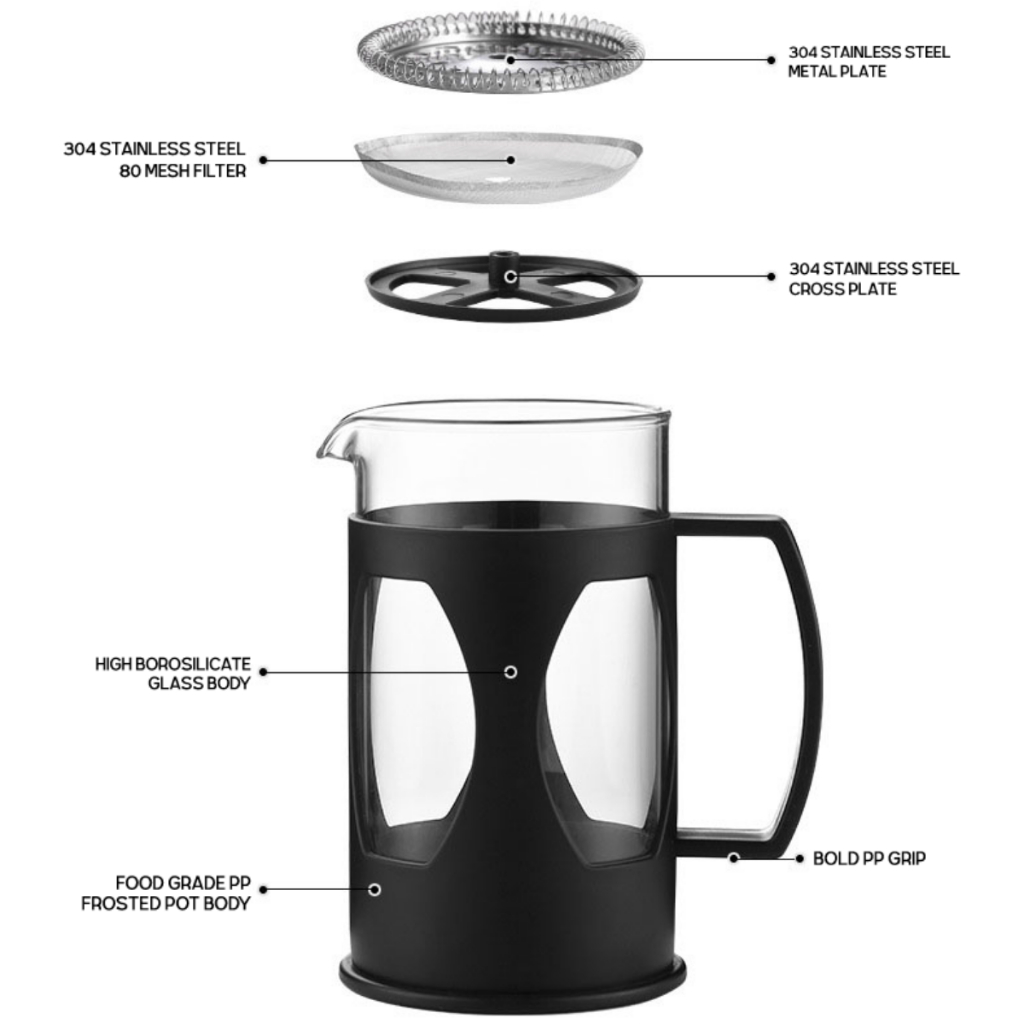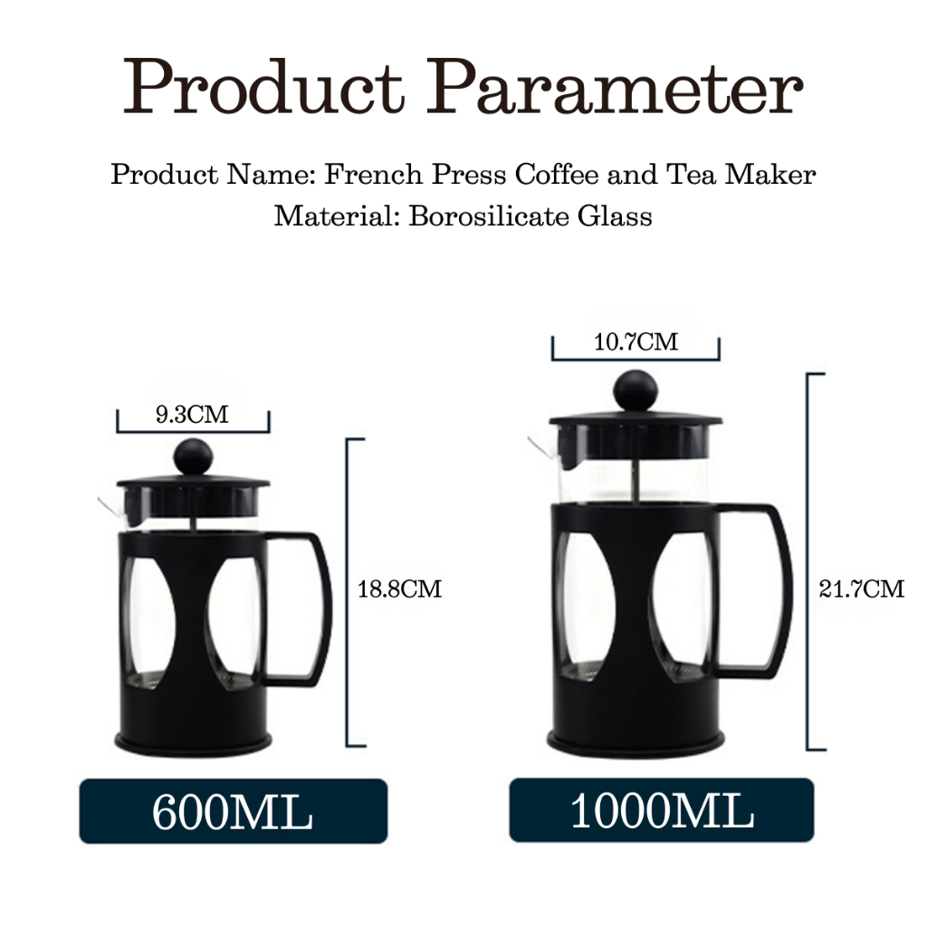 French Press Coffee and Tea Maker with Stainless Steel Filter High Quality Tea Coffee Glass Pot