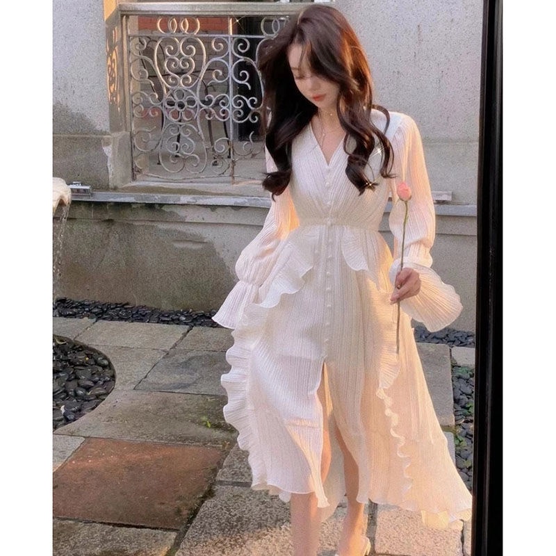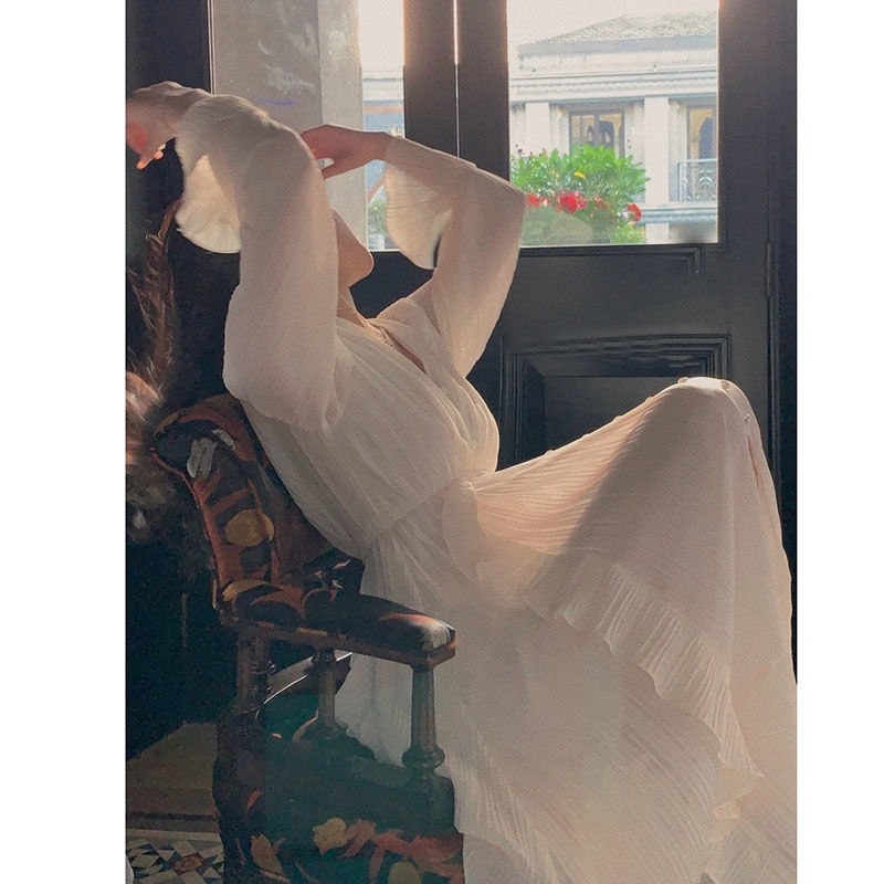 French Tea Break Dress Fairy Elegant White Dress