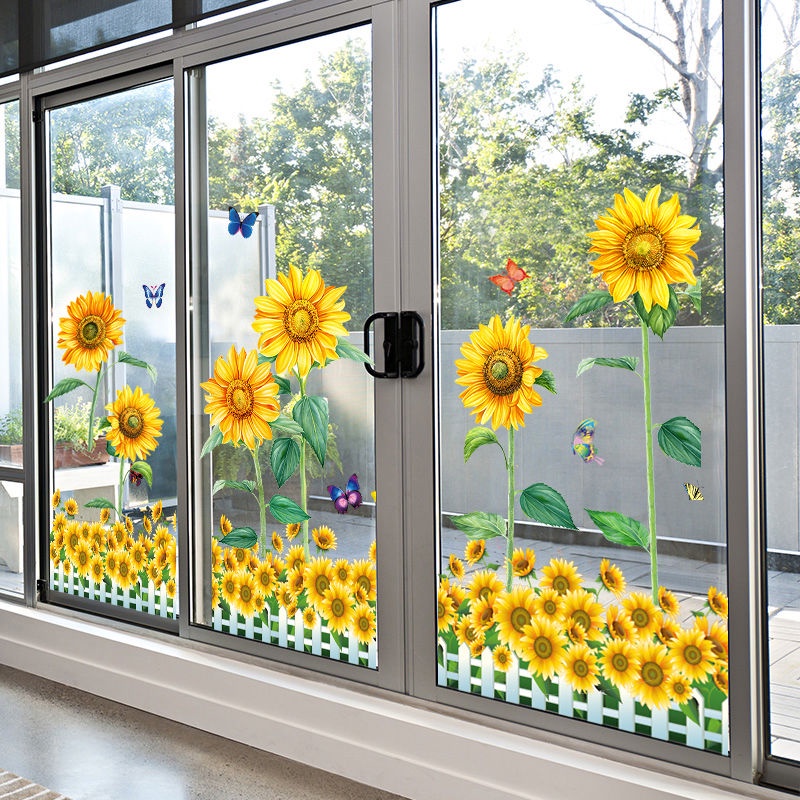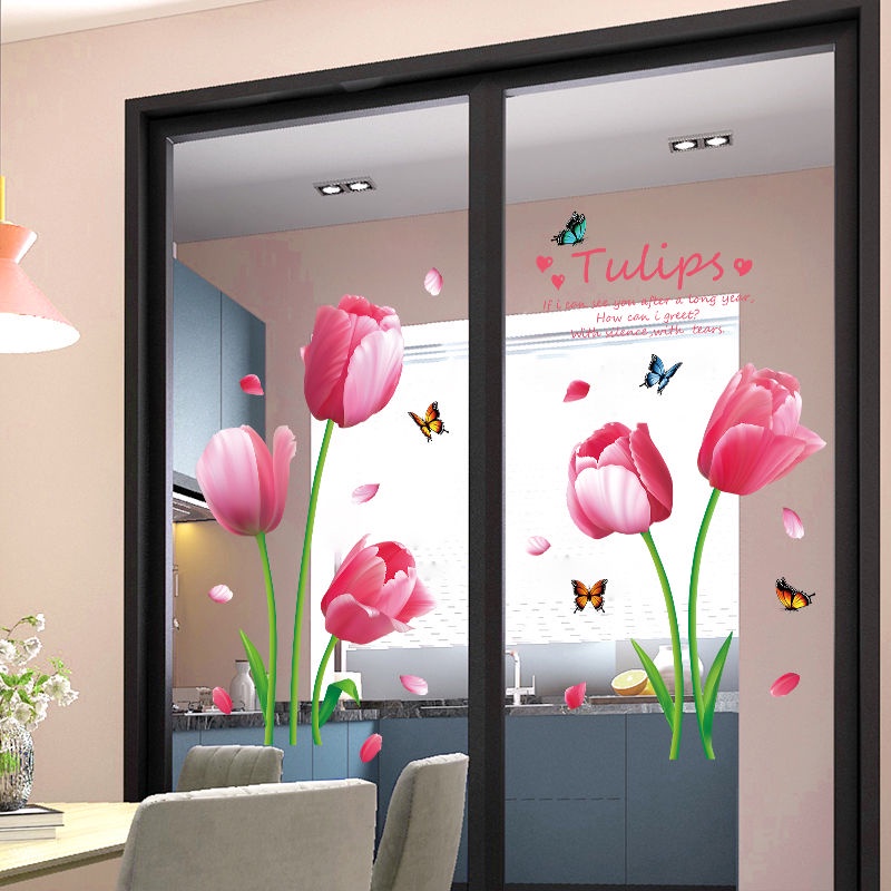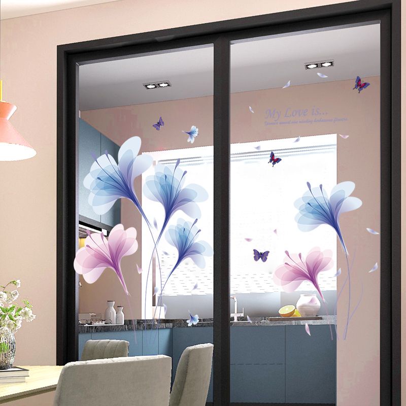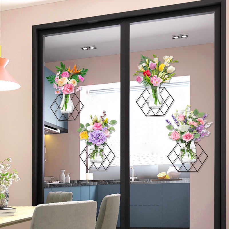 Fresh Glass Stickers Flower Decoration Shop Window Living Room Balcony Door Waterproof Self-Adhesive Nordic