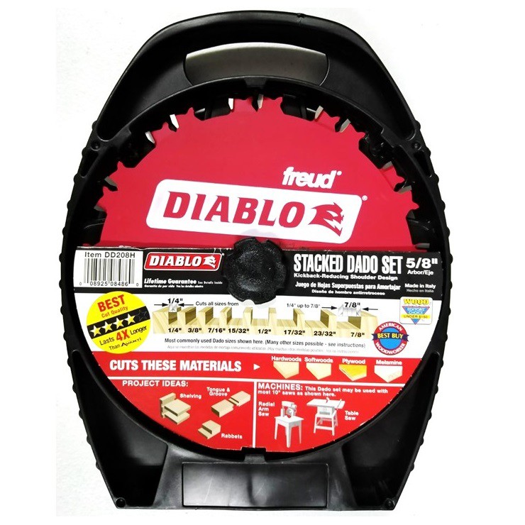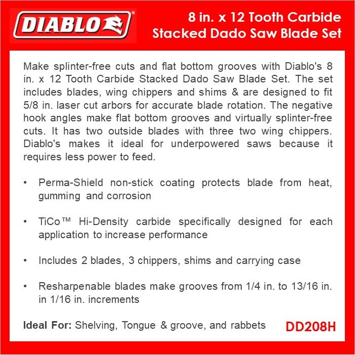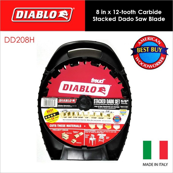 Freud Diablo 8-inch x 12-tooth Carbide Stacked Dado Saw Blade Set - DD208H