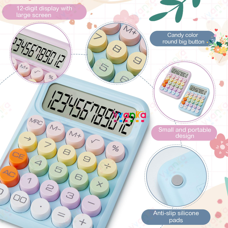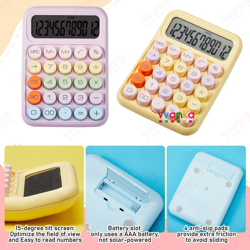 From PH Color Calculator Mechanical Large Display 12 Digit Keys Mechanical Dot Keyboard Big Button School