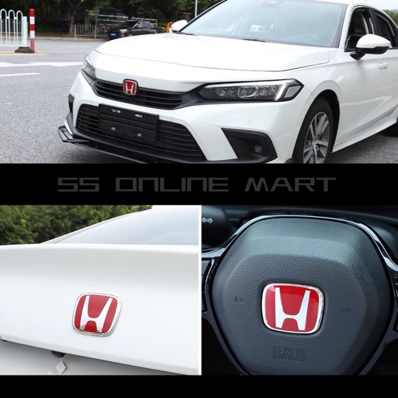Front And Rear Emblem Honda Civic FE Type-R Car Emblem Logo Red Steering Emblem RS Emblem