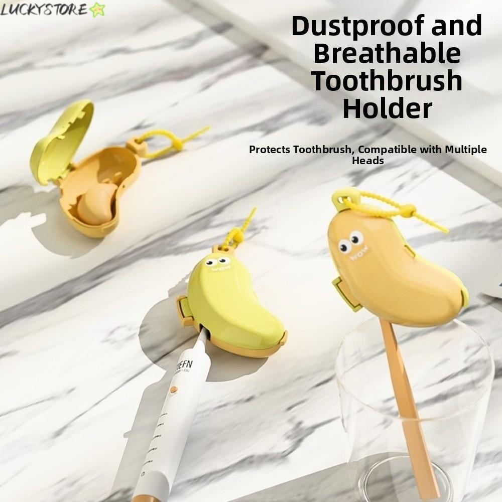 LUCKYSTORE Toothbrush Head Protective Cover, Brush Protect Plastic Toothbrush Cap, 2in1 Banana Shape Portable Toothbrush Storage Organizer for Travel Hike Camping