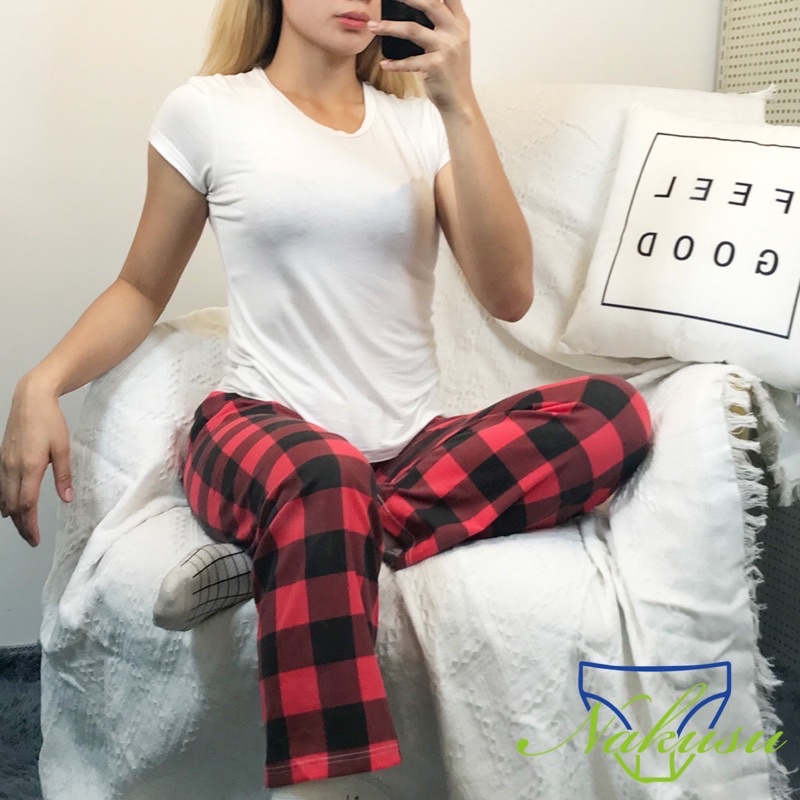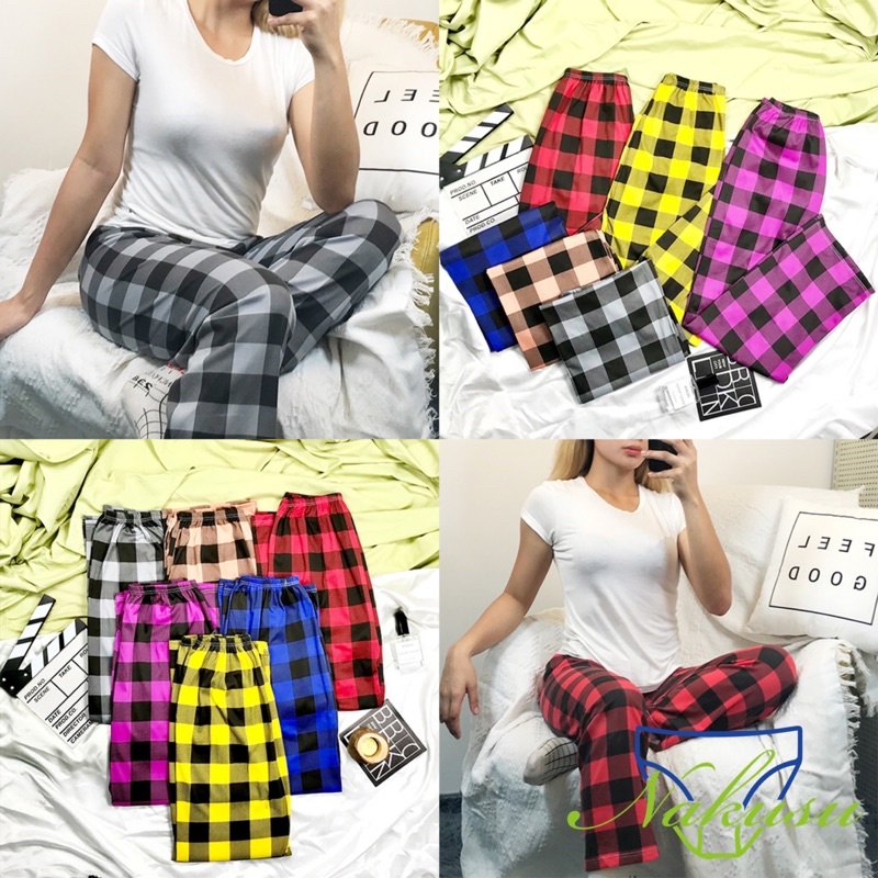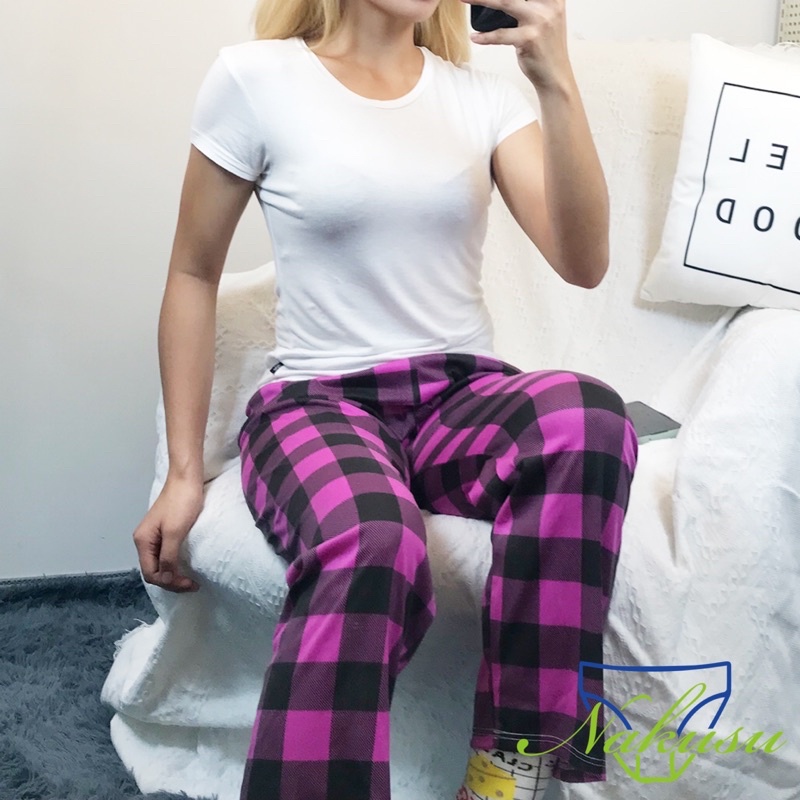 Nakusu Checkered Cotton Pajama Pants For Women SleepWear High Quality