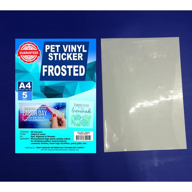 Frosted Transparent - PET Vinyl Printable Sticker - Waterproof - Inkjet Friendly - per pack