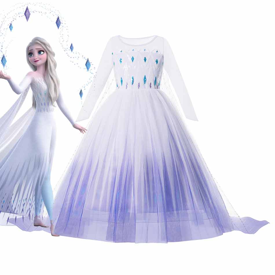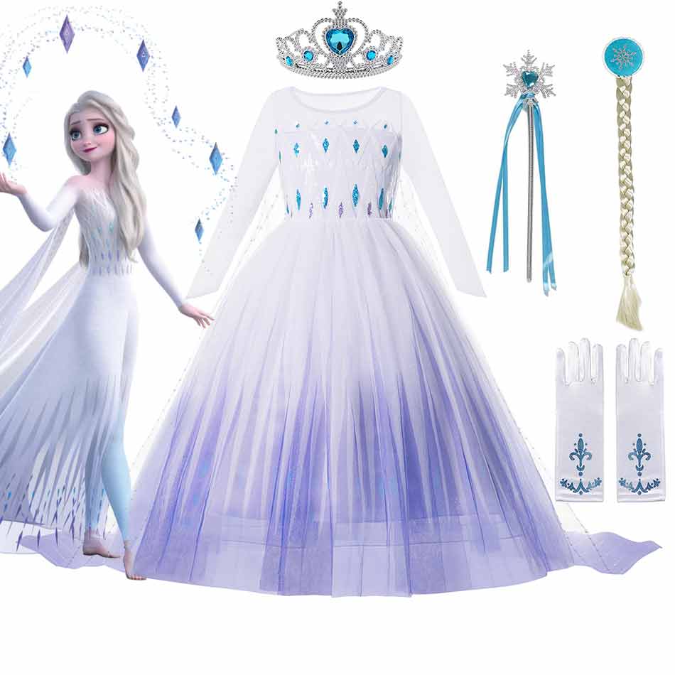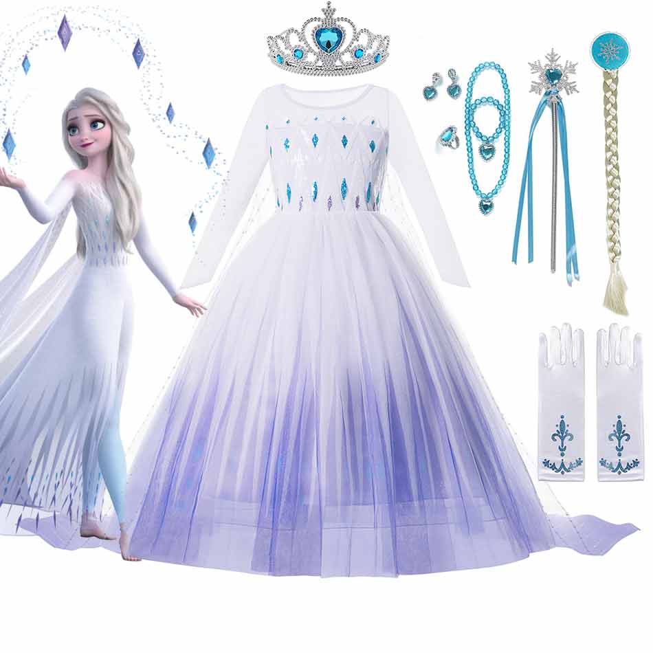 Princess Elsa Cosplay Halloween Dress for Girl Kids Fancy Clothings Elza White Dress Party Birthday Snow Queen