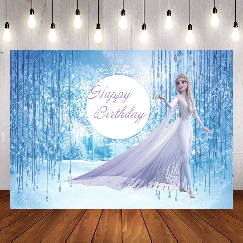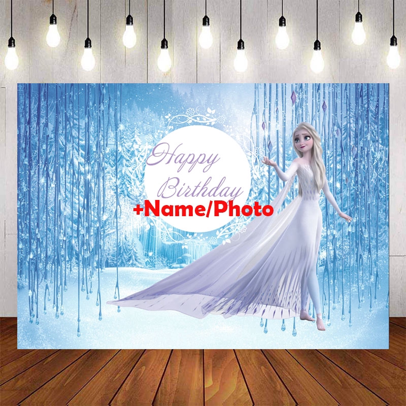 Frozen 2 Elsa Pricess Backdrops Cartoon DIsney Pricess For Girls Birthday Party Photography Blue Ice Backgrounds Photocall Custom Name Photo