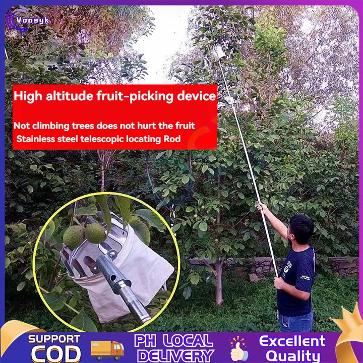 Fruit Picking Artifact Telescopic Pole Fruit Picker Stainless Steel High Altitude Fruit Picking Pole