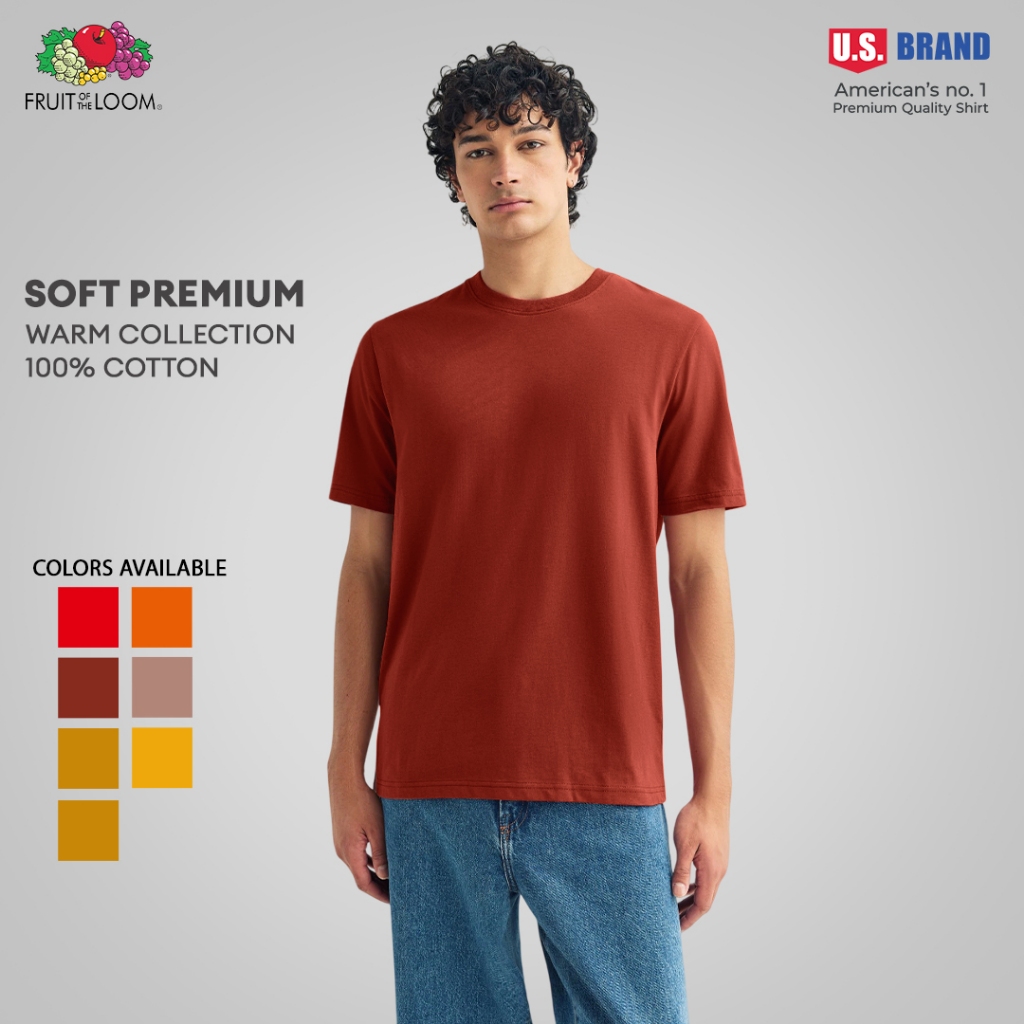 Fruit of the Loom Soft Premium T-Shirt for Men & Women 100% Cotton Unisex Plain Tees Warm Series