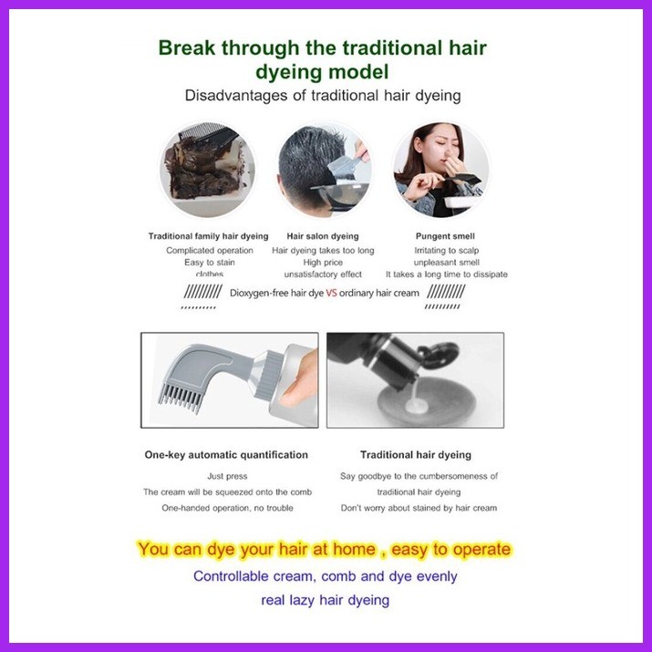 ❂ ✼ Buy 1 free 1 Hair dye cream with comb,Plant hair dye 80ml