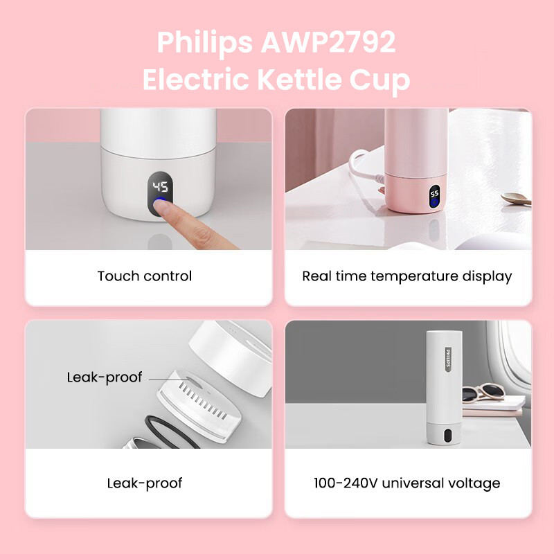 Philips Boiler GoZero AWP2792 Electric Kettle Cup 100-240V Thermos Cup Vacuum Insulating Bottle 400ml