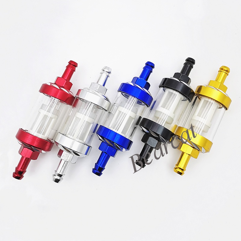 Fuel Filter Universal Billet Aluminum Metal Glass Fuel Filter for Motorcycle ATV Dirt bike Classic bikes and Small Engine