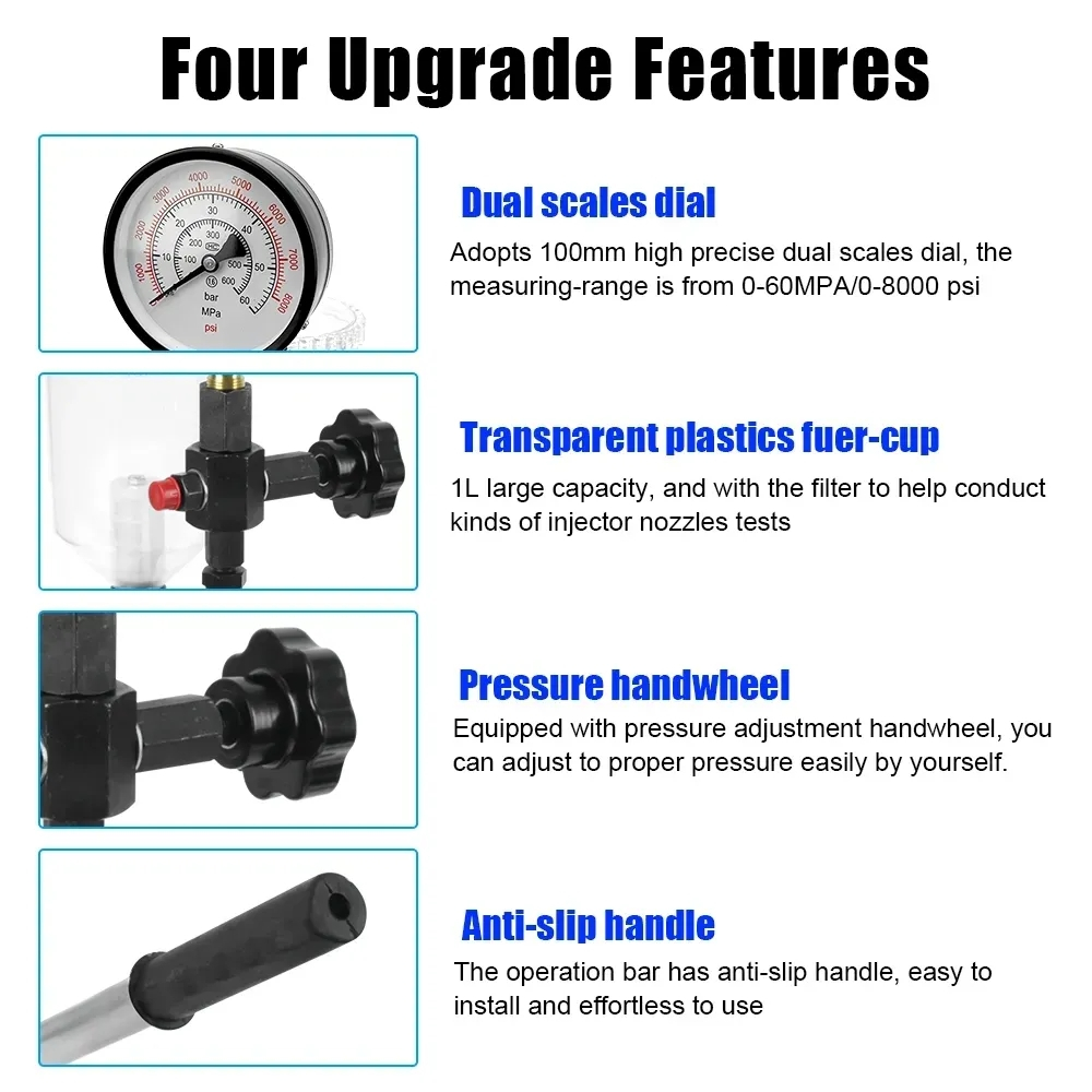 Fuel Injector Calibrator Dual Scale Gauge Max 60 Mpa Nozzle Pop Pressure Tester 0-400 BAR Common Rai