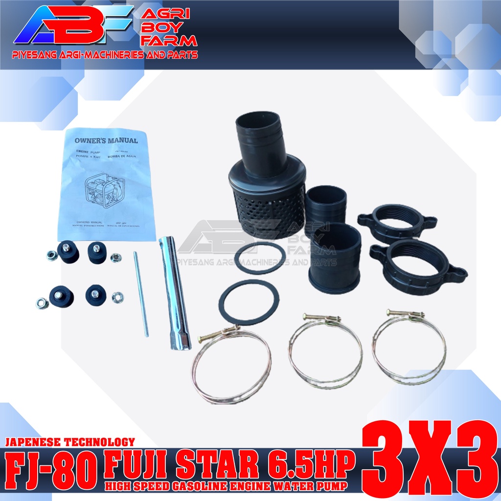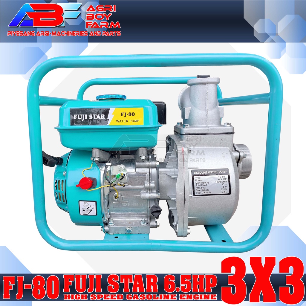 Fuji Star FJ-80 6.5hp 3x3 Water Pump Gasoline Engine Japanese Technology