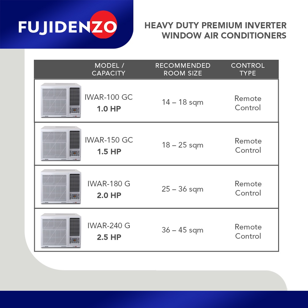 Fujidenzo 1.5 HP Window Full DC Premium Inverter Aircon IWAR-150GC (White)