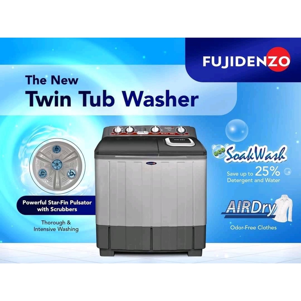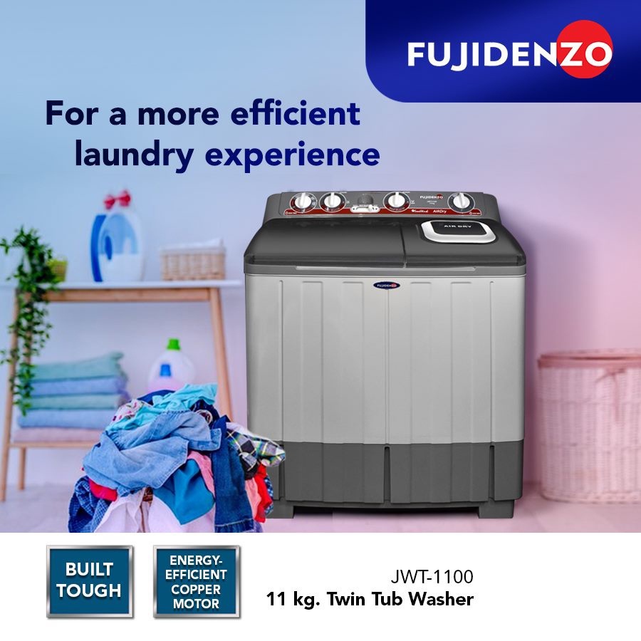 Fujidenzo 11 Kg Twin Tub with Eco-Soak Washing Machine JWT-1100 (Gray)