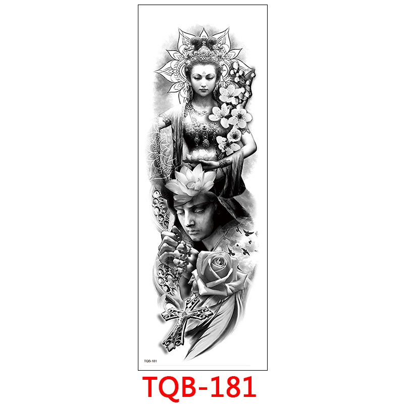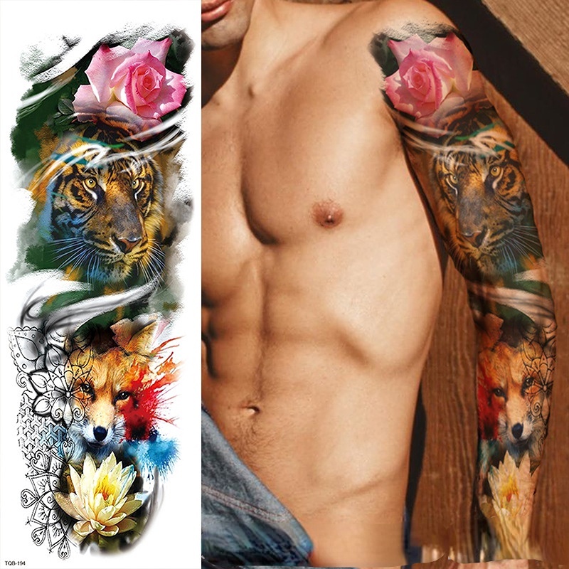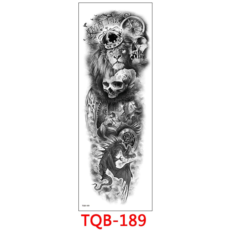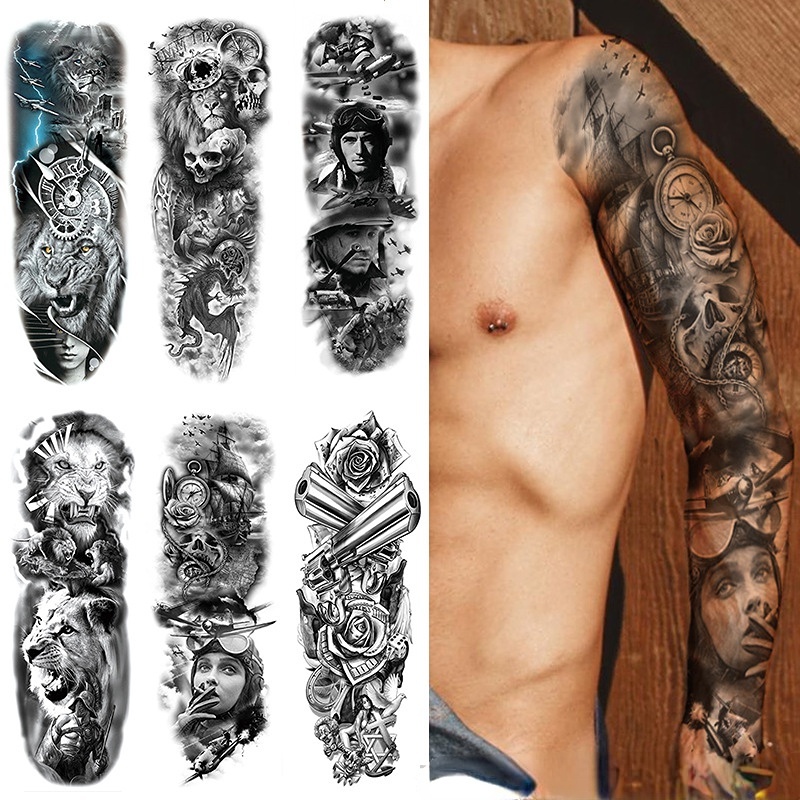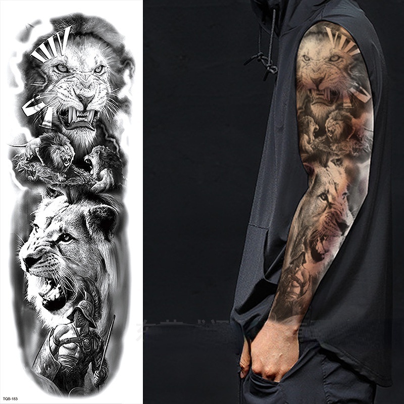 Full Arm Tattoo Stickers Waterproof Realistic Fake Tatoos Warrior Lion Skull Rose Flower Tatoo Sticker Black Totem Maori