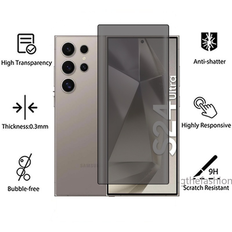 Full Cover Curved Screen Private Tempered Glass For Samsung Galaxy S24 Ultra 5G S24 Plus S24+ Protector Anti Peek Privacy Front Screen Protector Back Camera Lens Protection Film