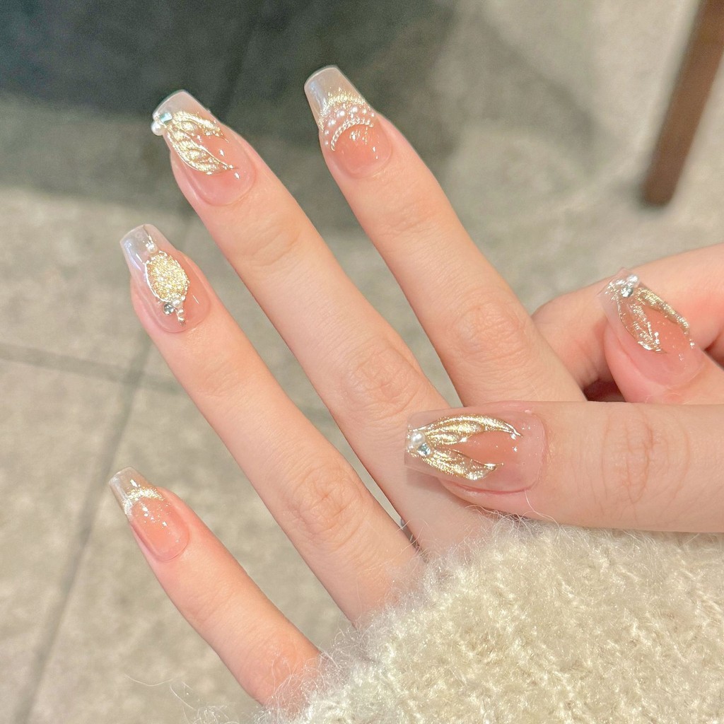 Full HANDMADE Press on Nails Mermaid Dream Fishtail Cat Eye Pearl Temperament Short Trapezoid/Oval Fake Nails With Glue Phototherapy Nails Reusable Waterproof