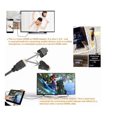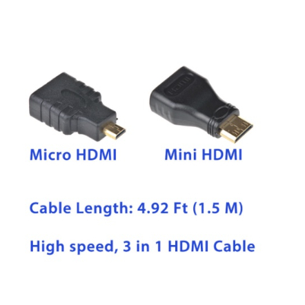 Full HD 3 in 1 High Speed HDMI to Mini/Micro HDMI Adapter Cable for PC TV PS4 Blu X-Ray