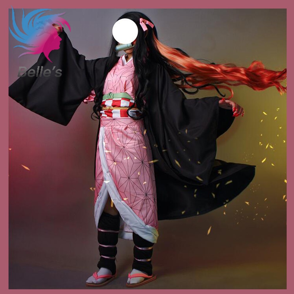 Full Set Demon Slayer Nezuko Cosplay Costume for Kids Adult Women Girl Anime Outfit Kimono halloween