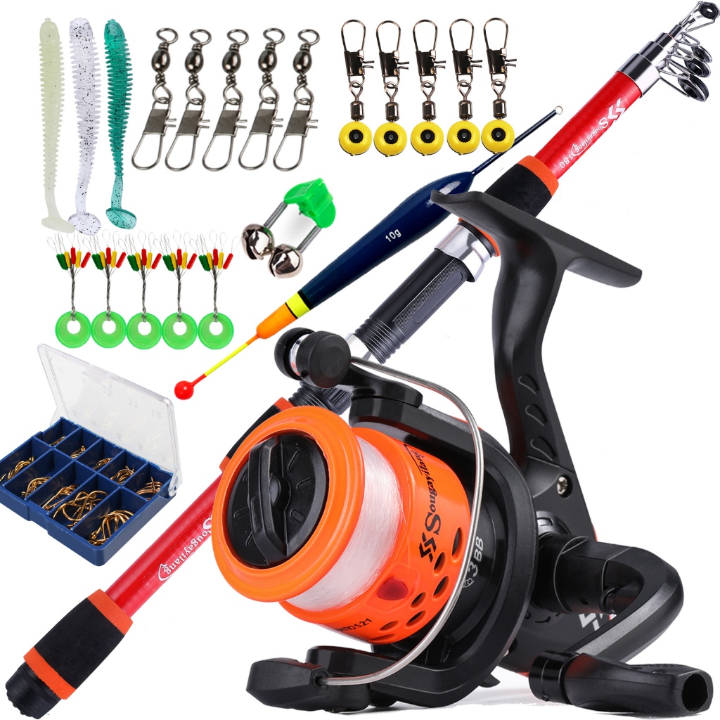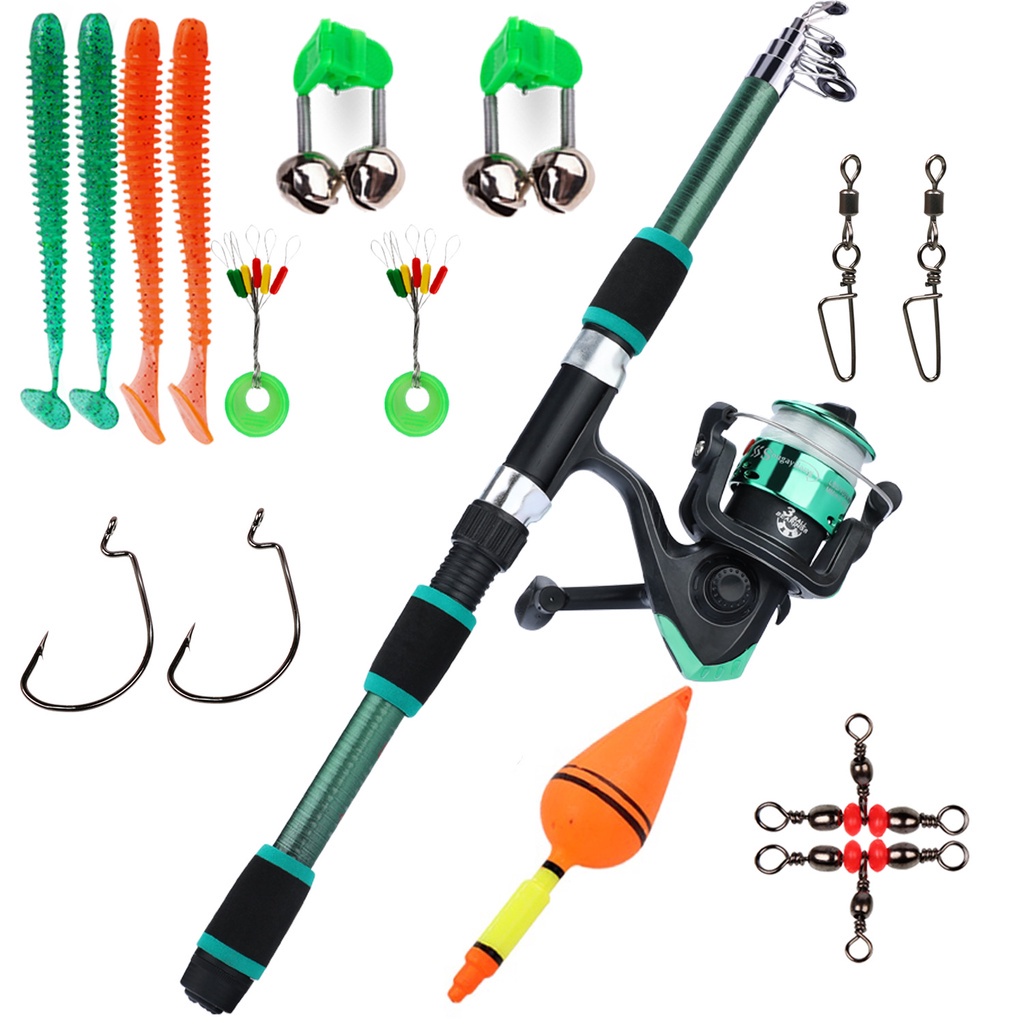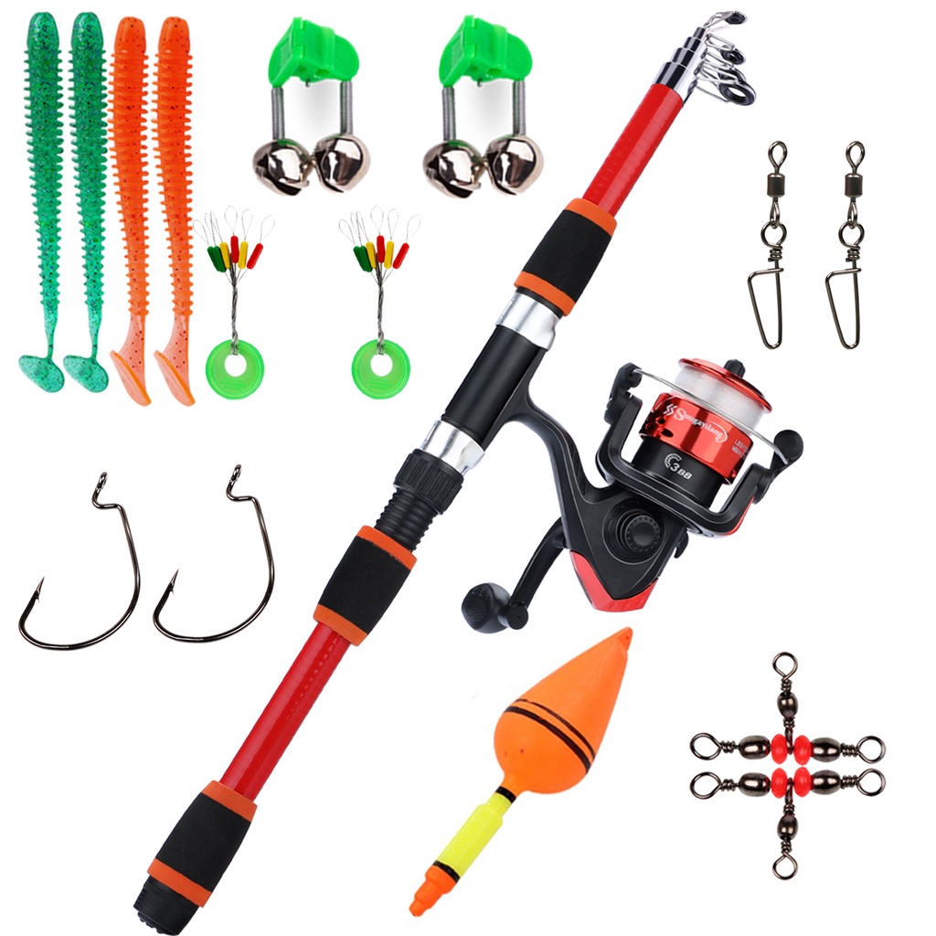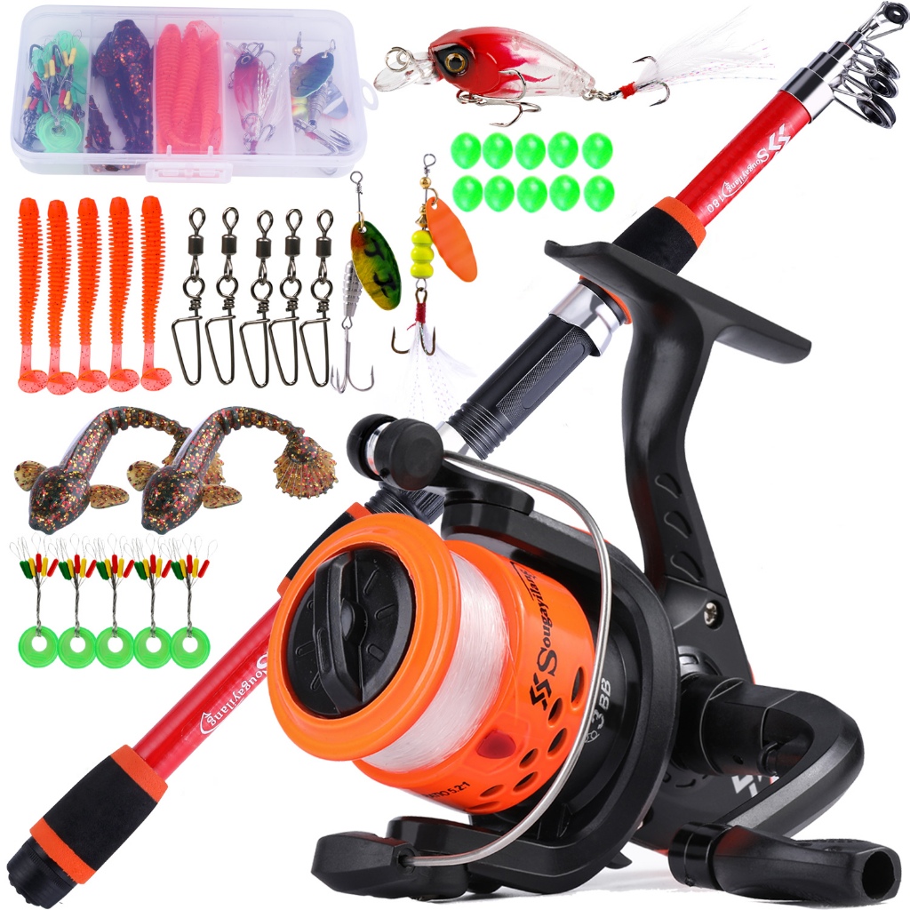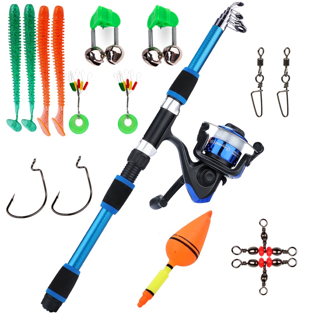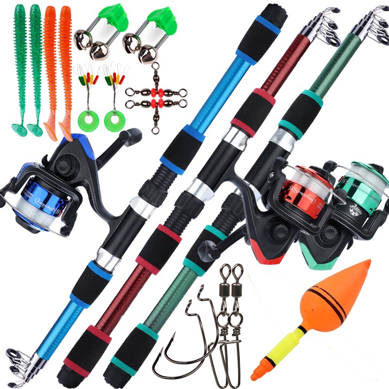Full Set Spinning Fishing Rod Telesscopic 1.8m and Fishing Reel with Line Lure