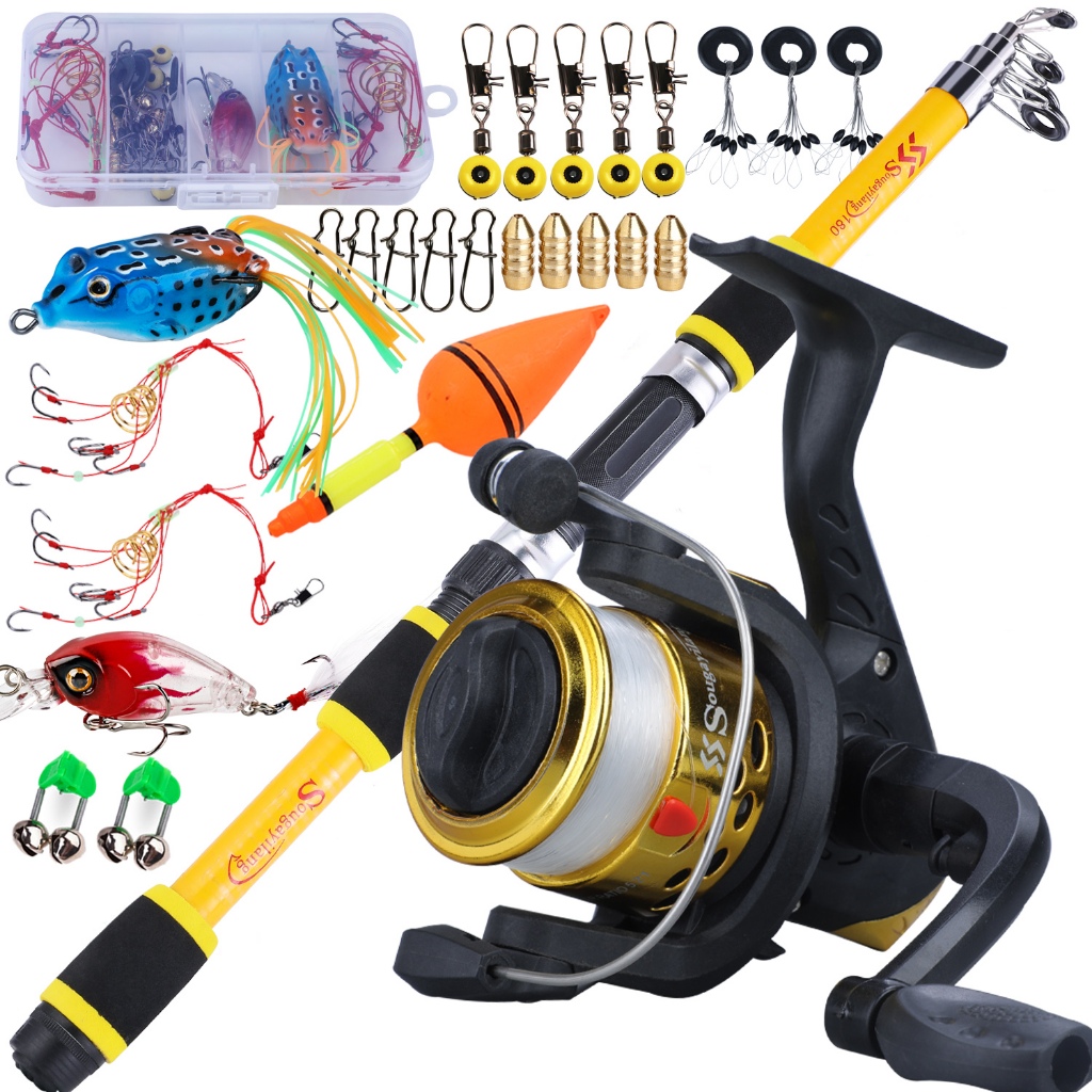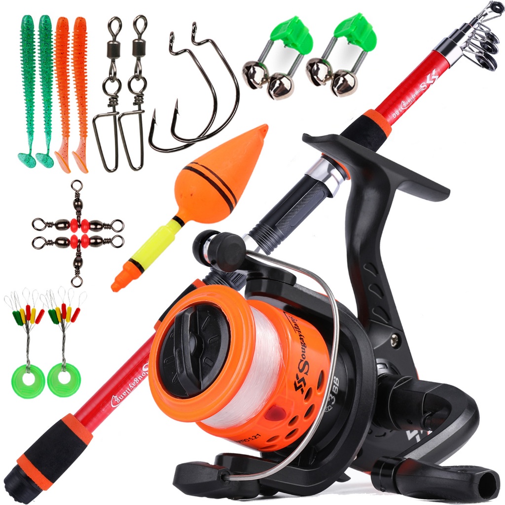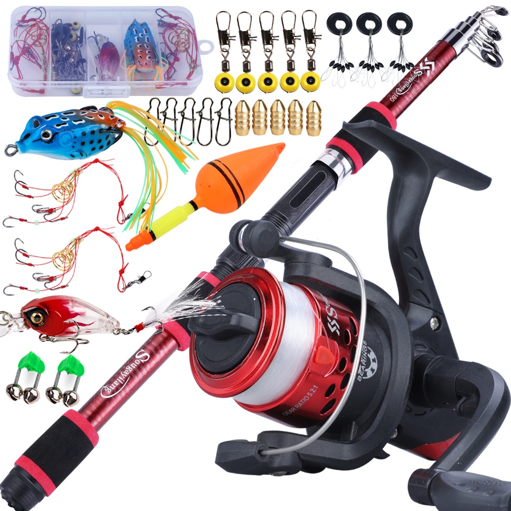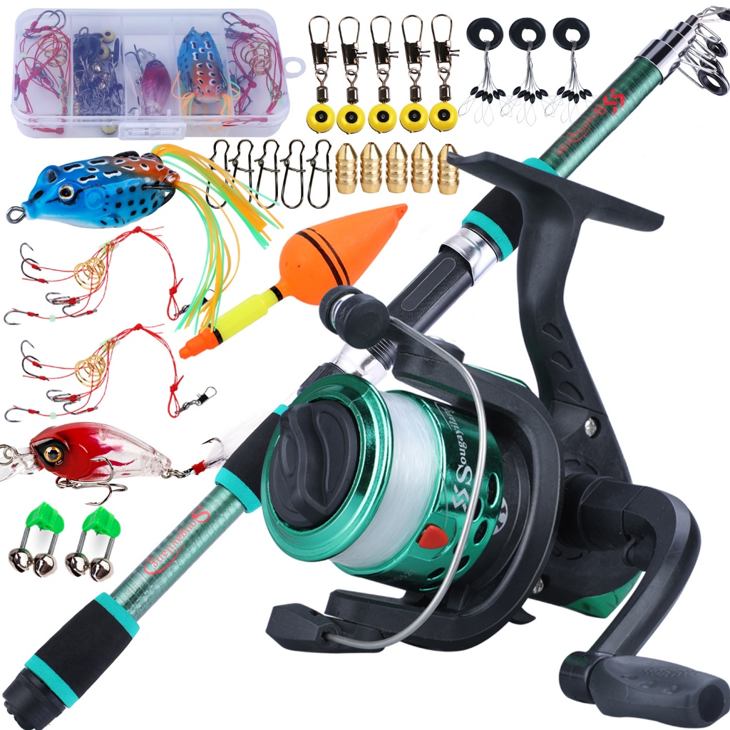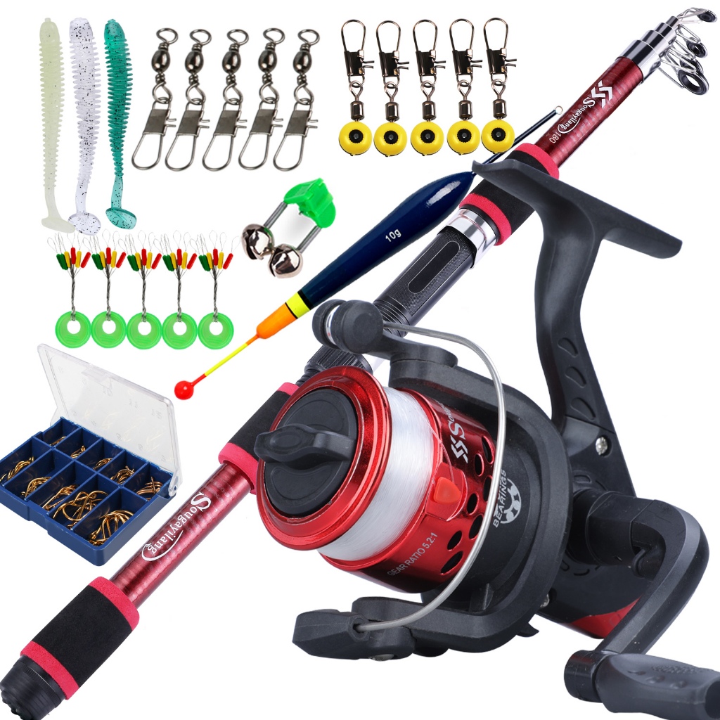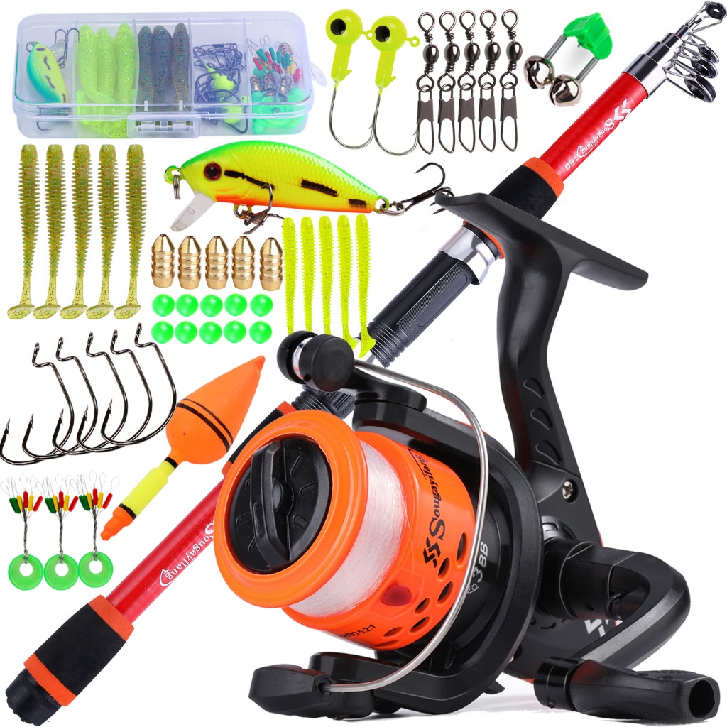 Full Set Spinning Fishing Rod Telesscopic 1.8m and Fishing Reel with Line Lure