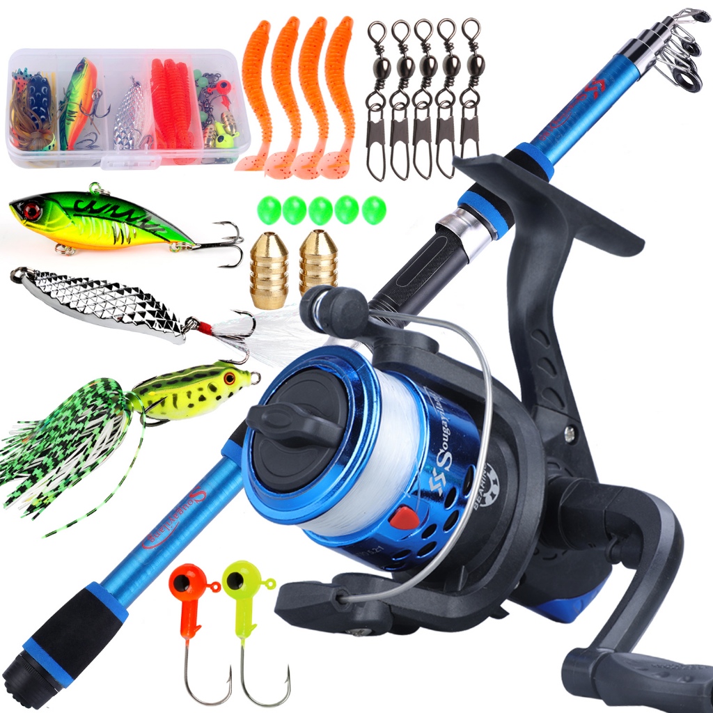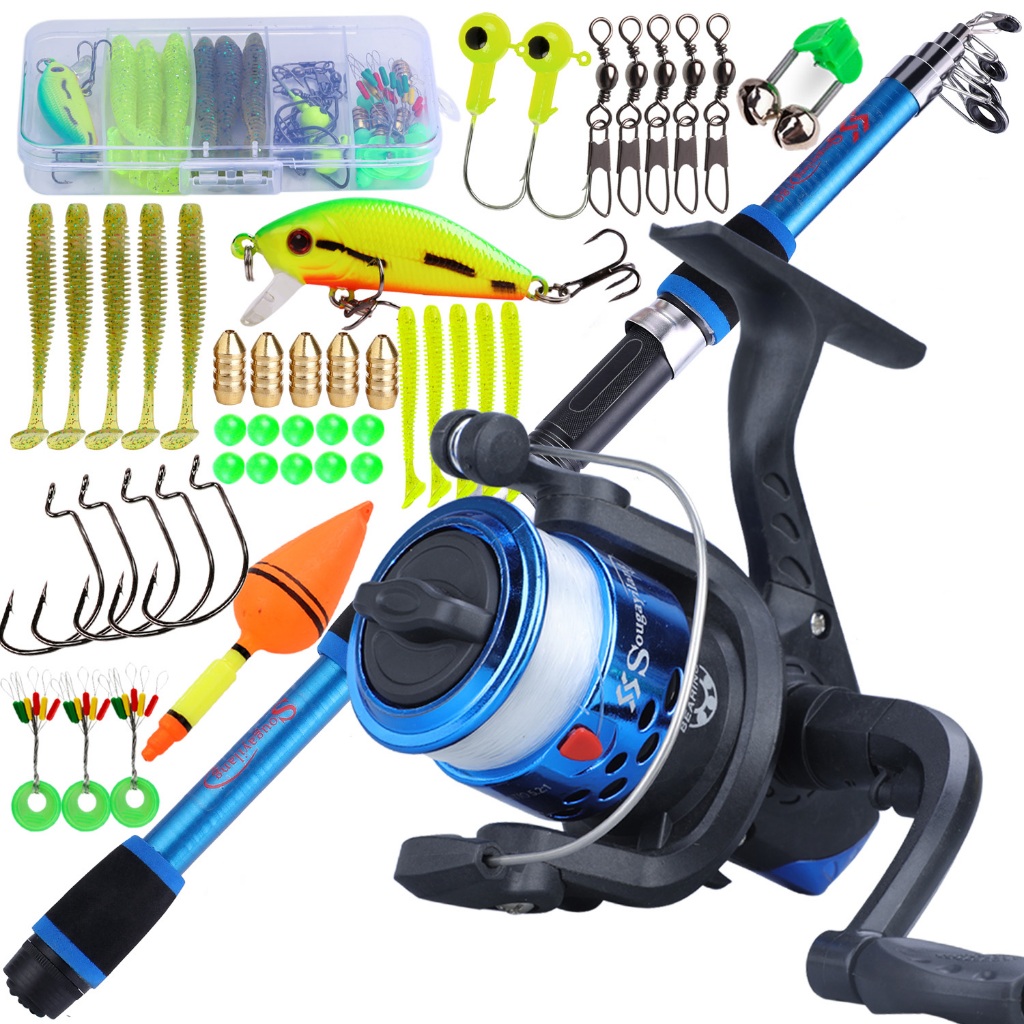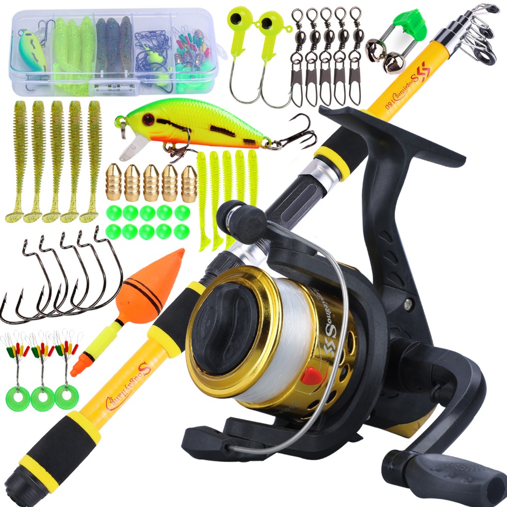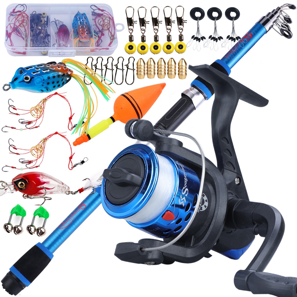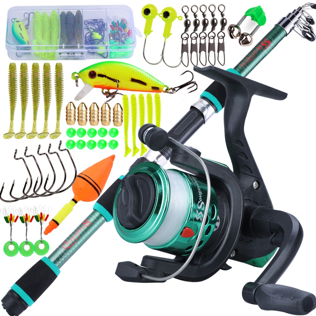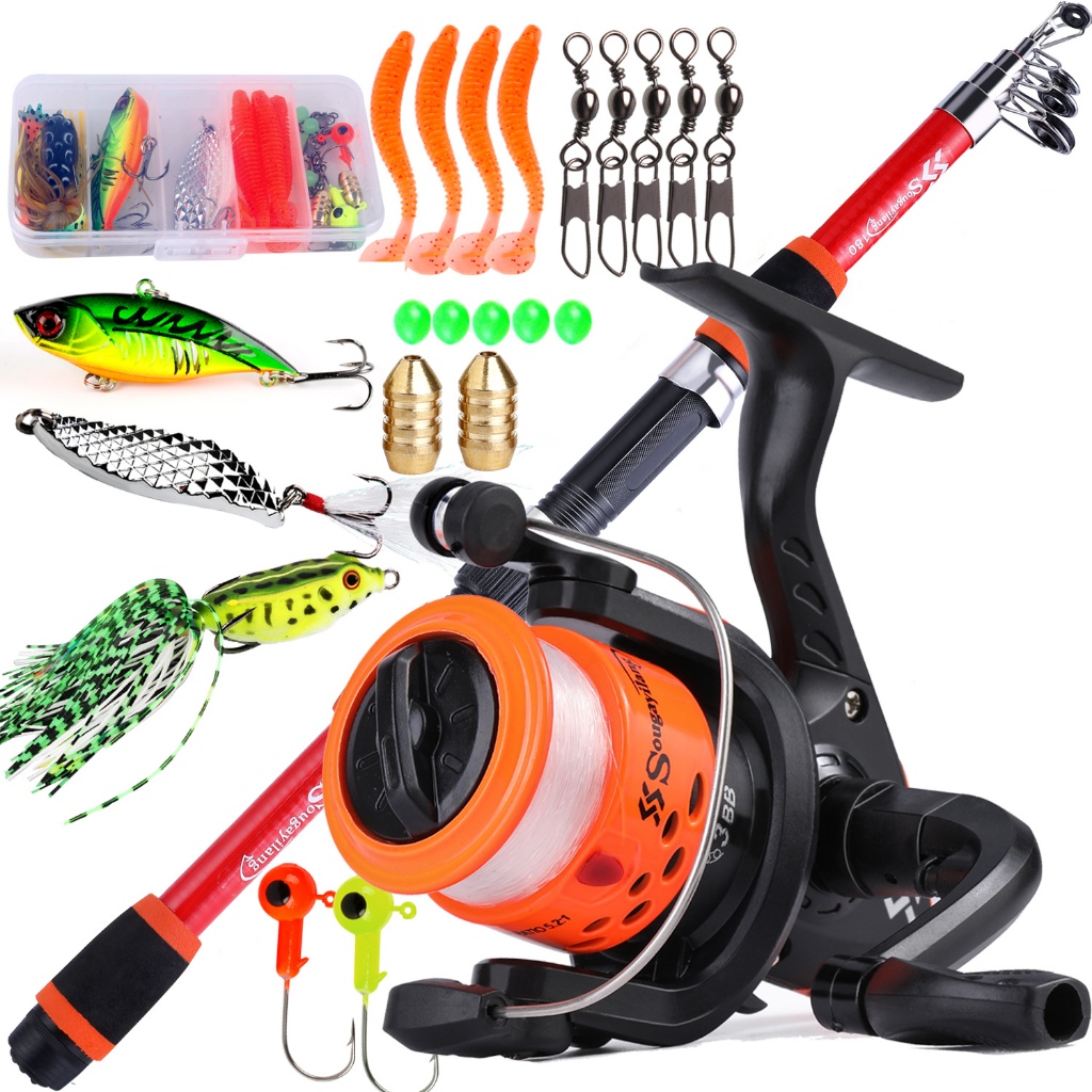 Full Set Spinning Fishing Rod Telesscopic 1.8m and Fishing Reel with Line Lure