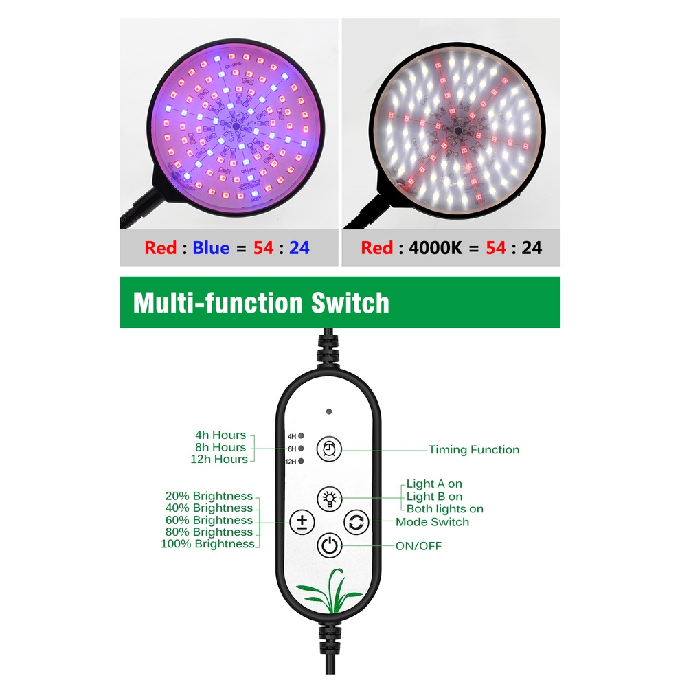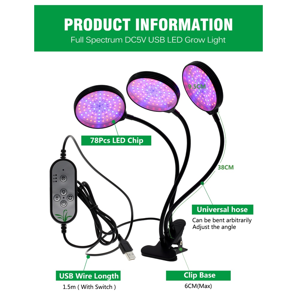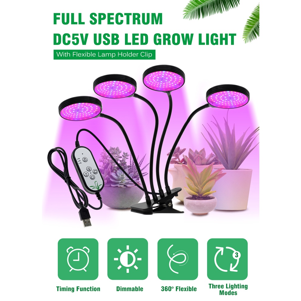 Full Spectrum Phytolamps DC5V USB LED Grow Light with 360 Degrees Flexible Clip Dimmable 3 Mode Timer LED Plant Growth Light Indoor Hydroponic Veg Flower Lamp