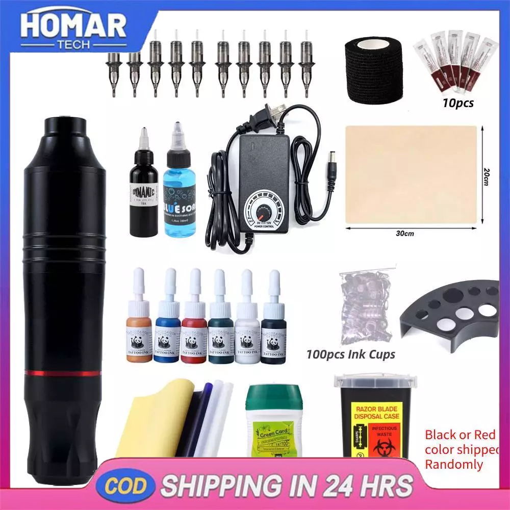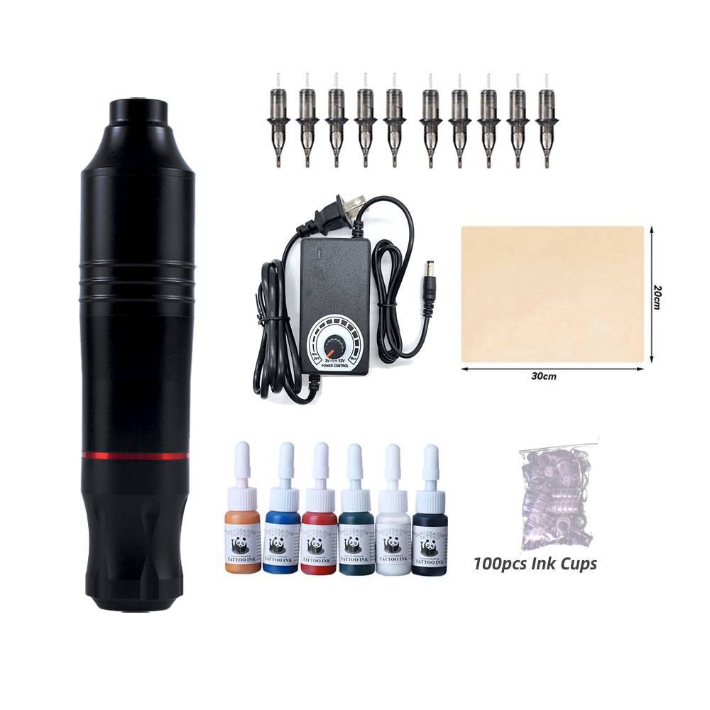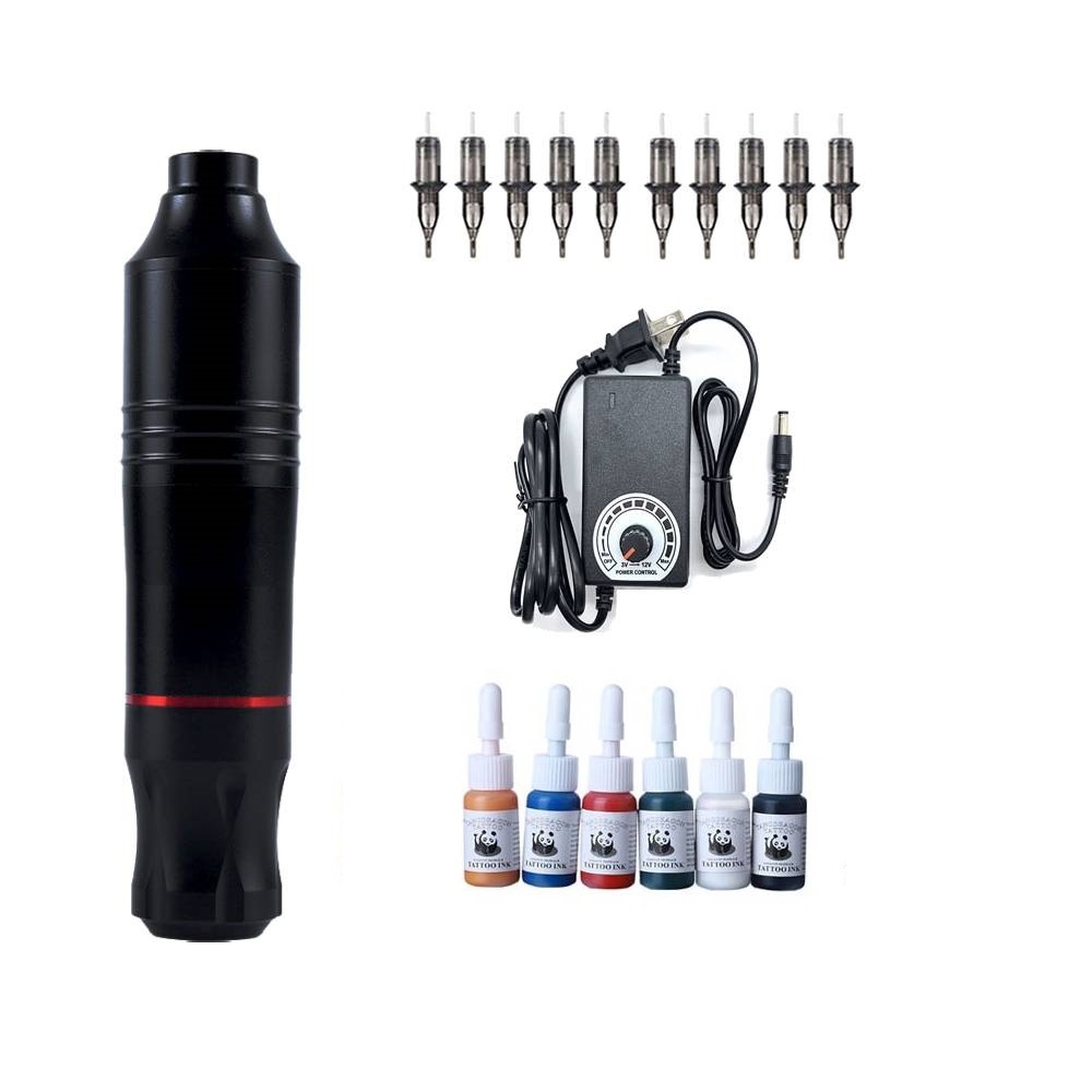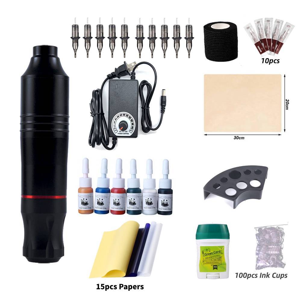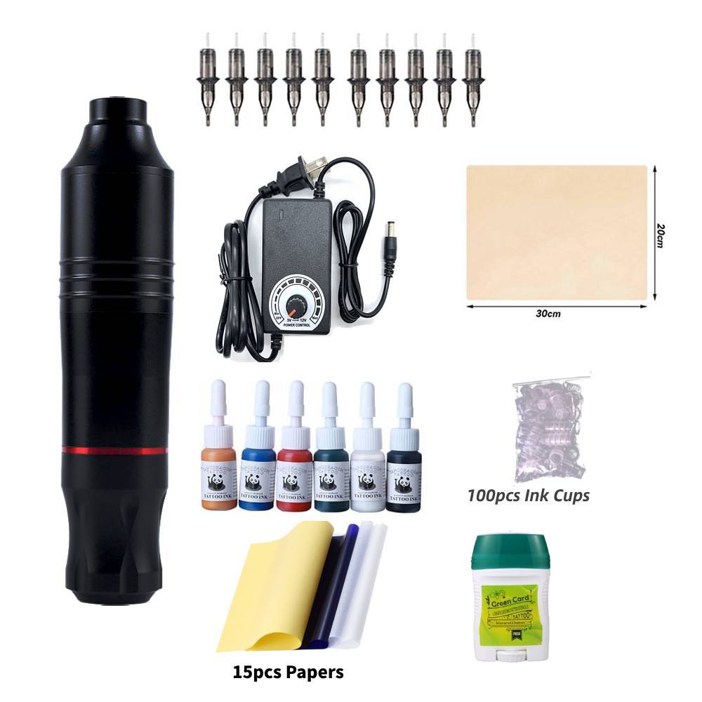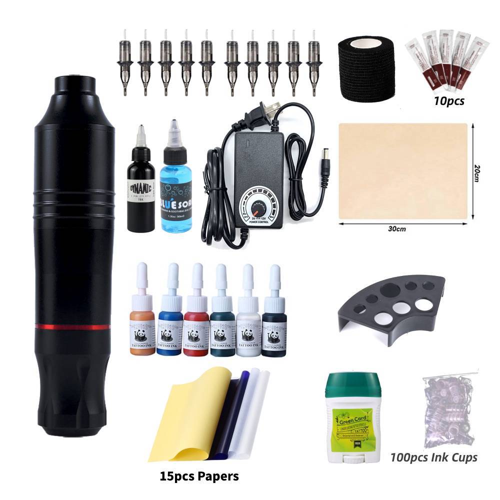 Full Tattoo Set Tattoo Pen Type Machine Power Supply with Tattoo Ink and Skin Clean Blue Soap Cream
