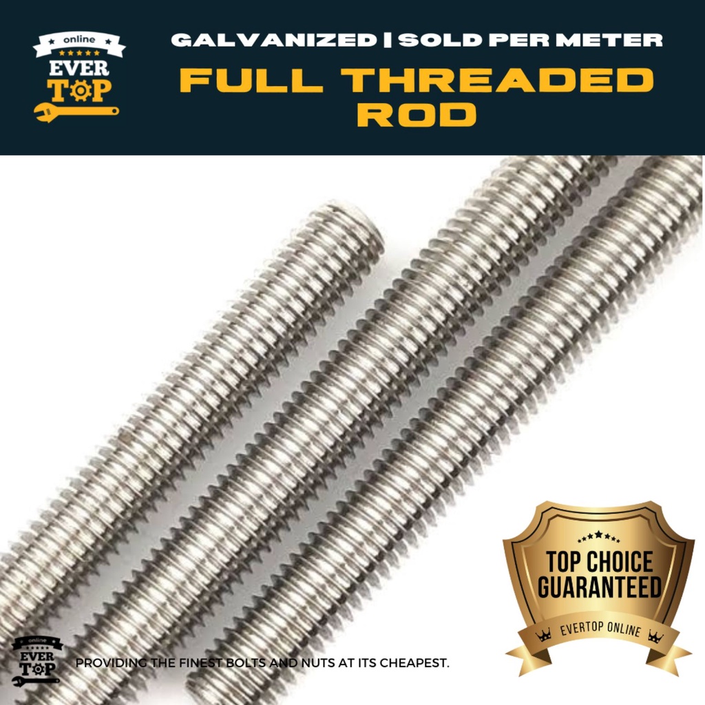 Full Threaded Rod 3/8, 1/2, 1/4, 5/16 Galvanized (Gi) 1 Meter Per Order Rod for hangers