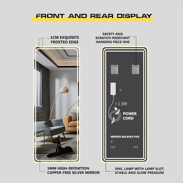 Full length mirror with light full body mirror wall fitting mirror3 color time human body sensor mir