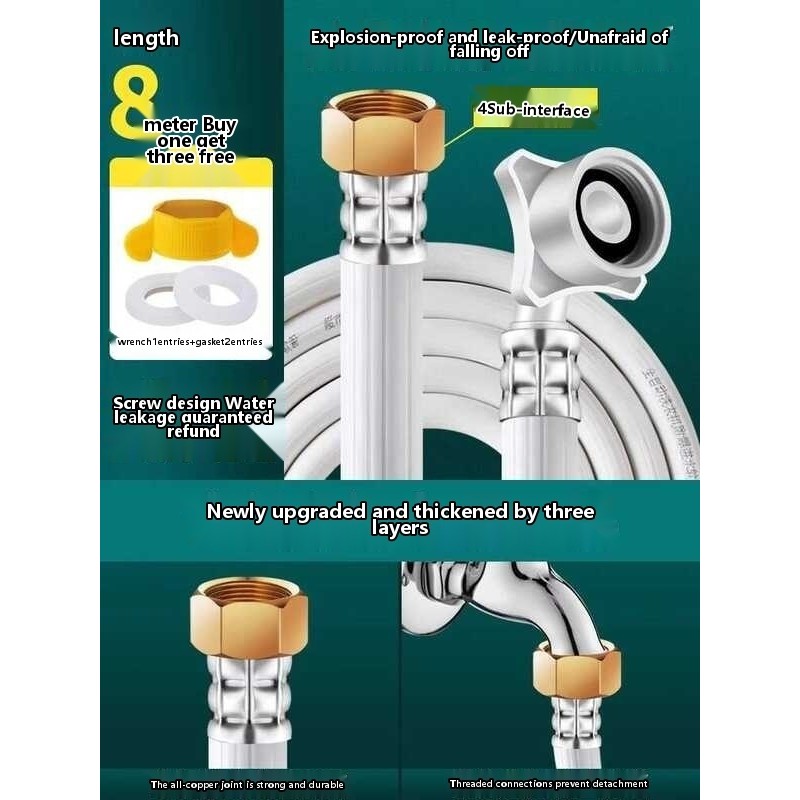 Fully automatic washing machine hose extension 4-point universal threaded joint inlet water