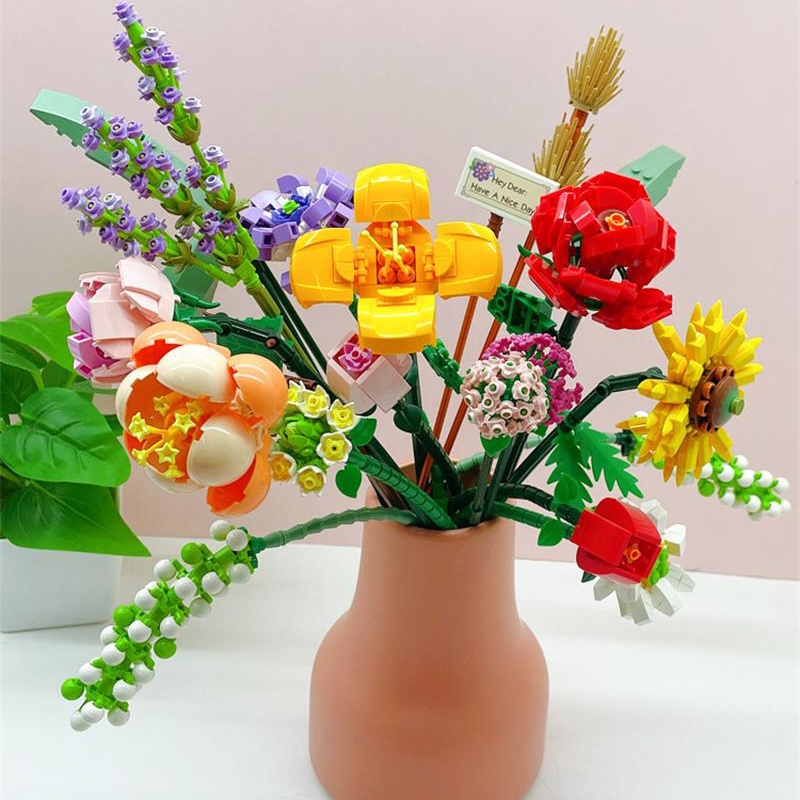 Fun Ideas Blocks Eternal Flower Building Bricks Beautiful Lotus Rose Tulip Sunflower LilyToys for Children Girls Kids Present 1170