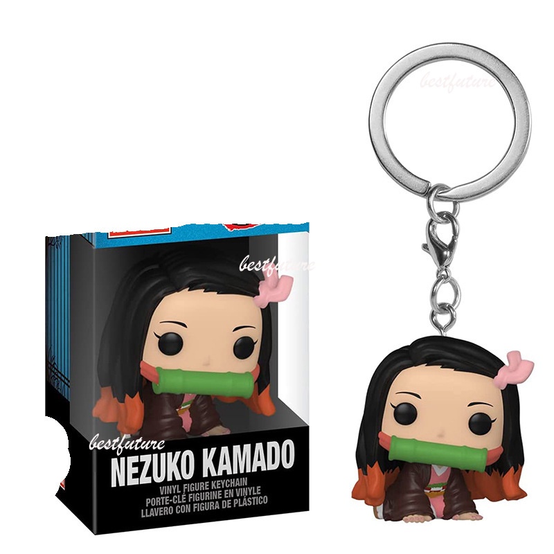 Funko Pop Keychain Demon Slayer Nezuko Zenitsu Tanjiro Inosuke Keyring Action Figure Decoration Ornaments