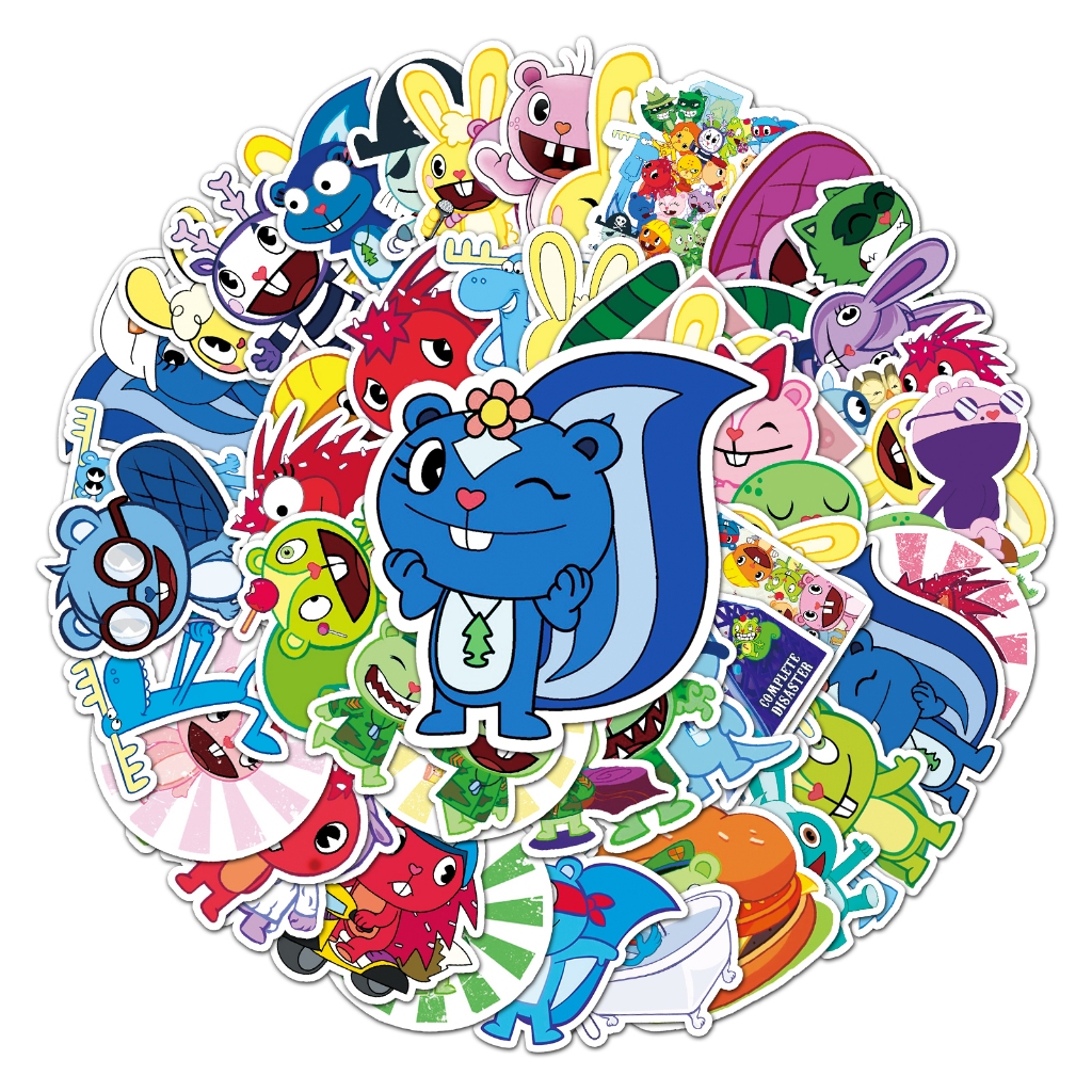 Funny 50pcs Happy Tree Friends Stickers Waterproof Graffiti DIY Laptop Luggage Bike Stickers