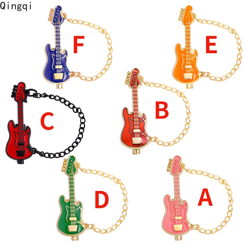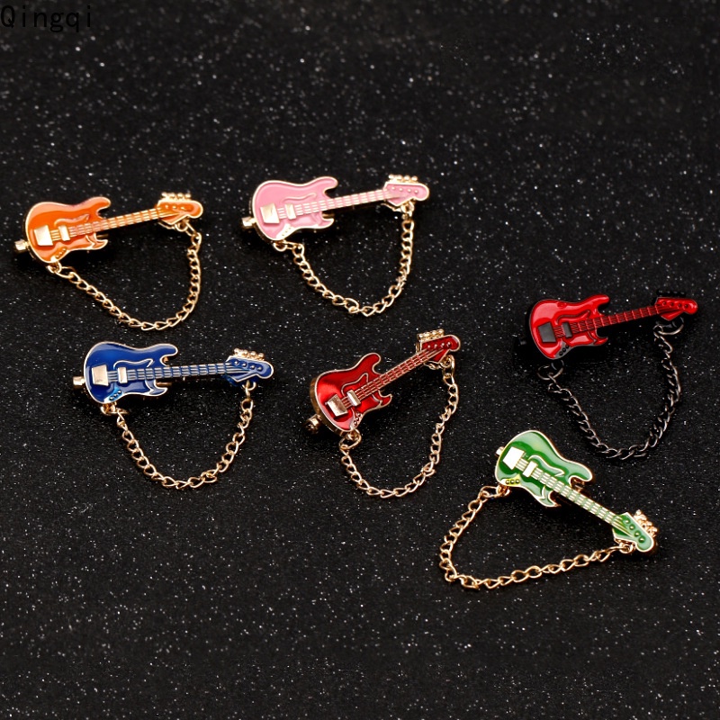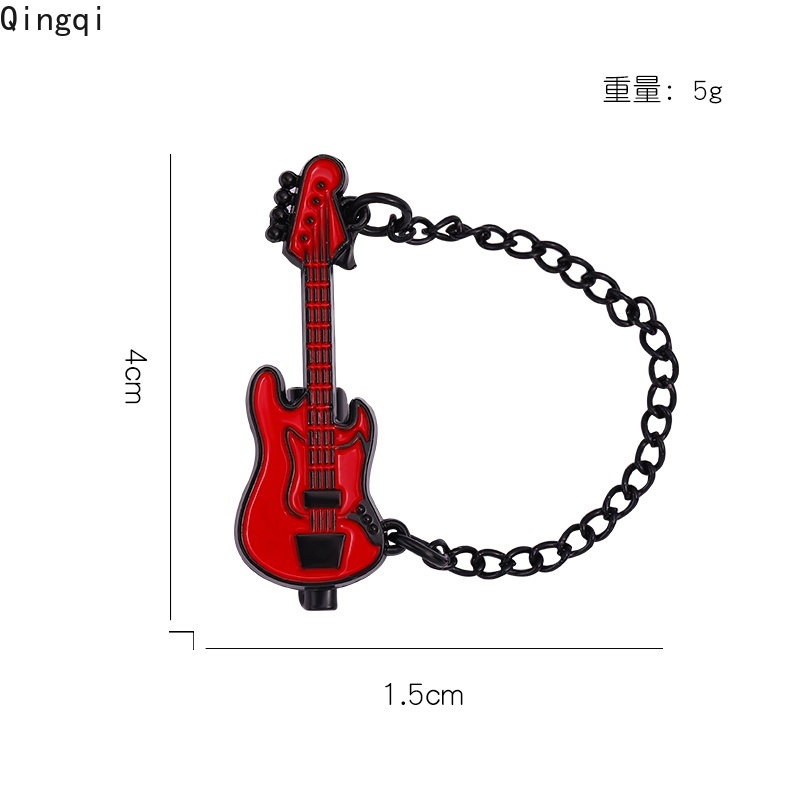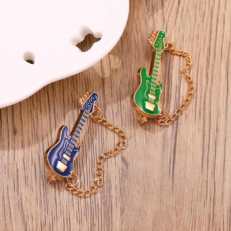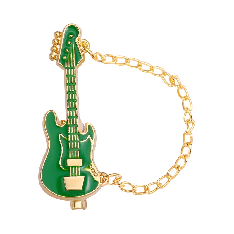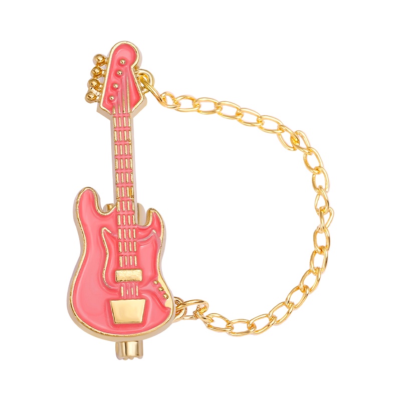 Funny Guitar with Chain Enamel Pin Guitar Brooches Musical Instrument Lapel Pin Badges Cartoon Jewelry Gift for Kids Friends