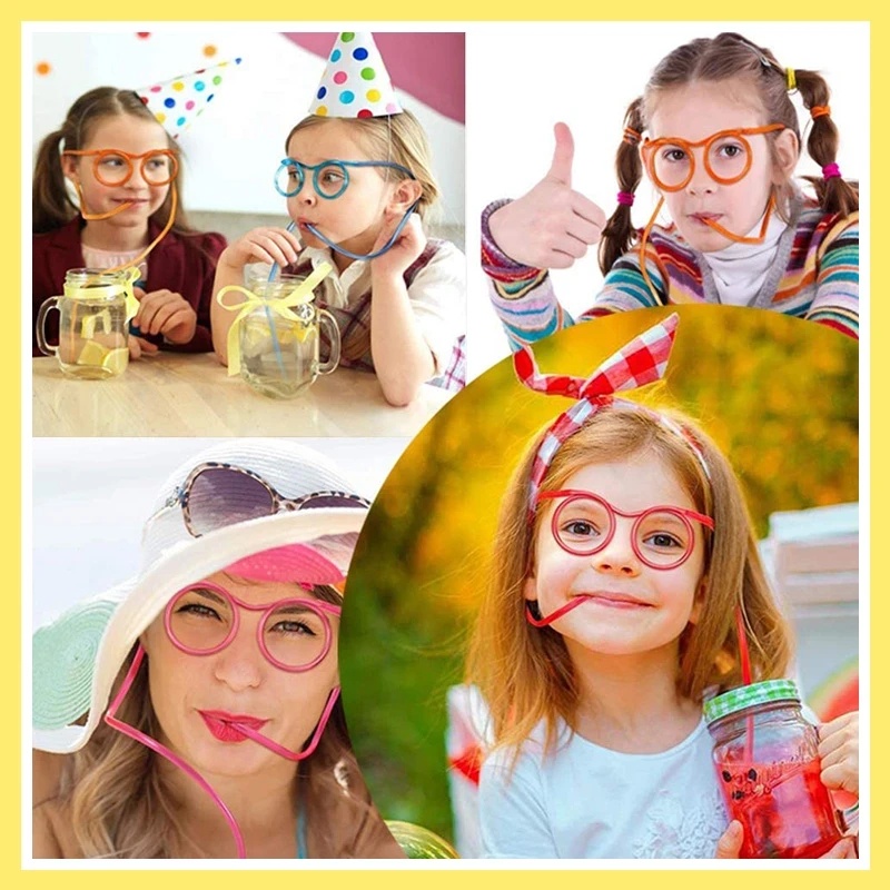 Funny Soft Glasses Straw Unique Flexible Drinking Tube Kids Party Accessories Crazy DIY Drinking Straws for Birthday Party Supplies