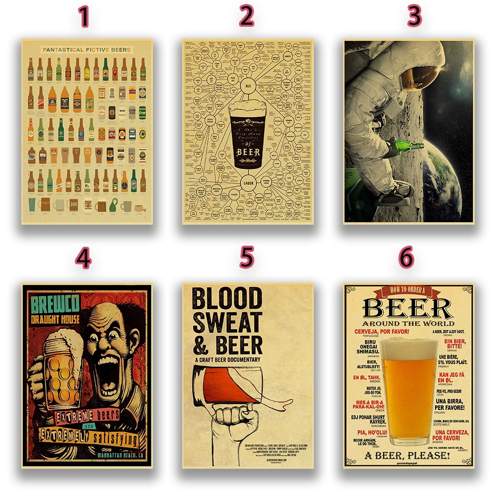 Funny beer astronaut drink beer retro poster poster kraft paper home decoration bar wall decor